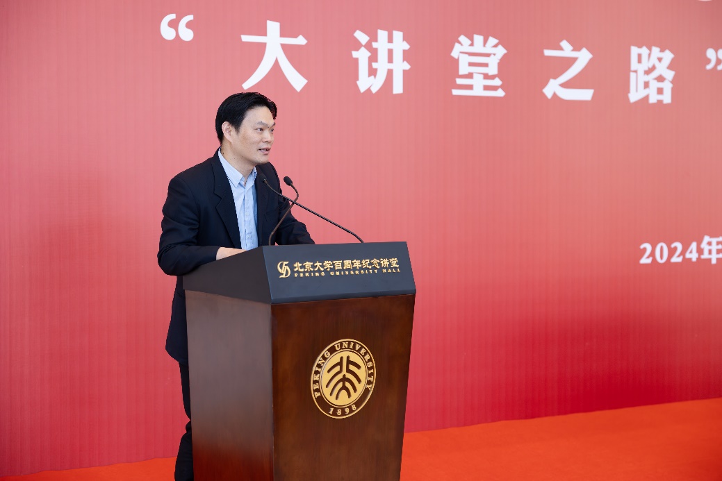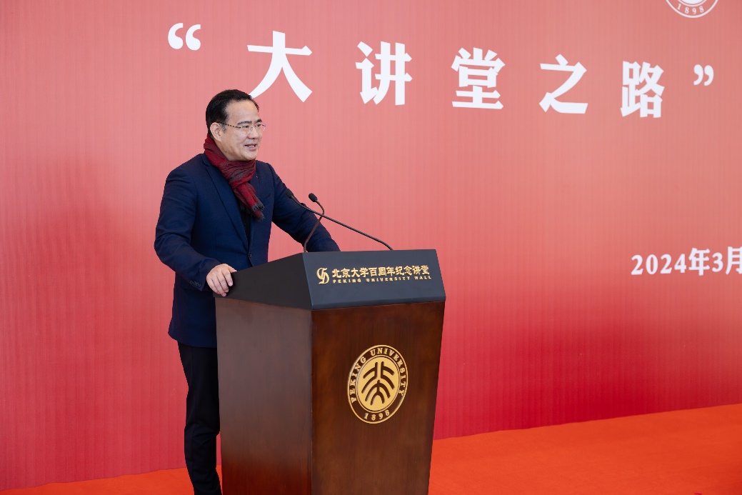 作为教师代表,燕京学堂院长董强在致辞中表示,很荣幸见证讲堂不同时期的发展历程,对本次展览的策划推出感到非常惊喜。他通过“大讲堂之路”中“大”与“讲”的理解阐释,赞誉讲堂为北大学子营造书本学科之外更为丰富博大的世界,并且突破单纯场地范畴,打通艺术与学术的边界,在帮助学生更好理解艺术、理解世界方面发挥了重要作用。