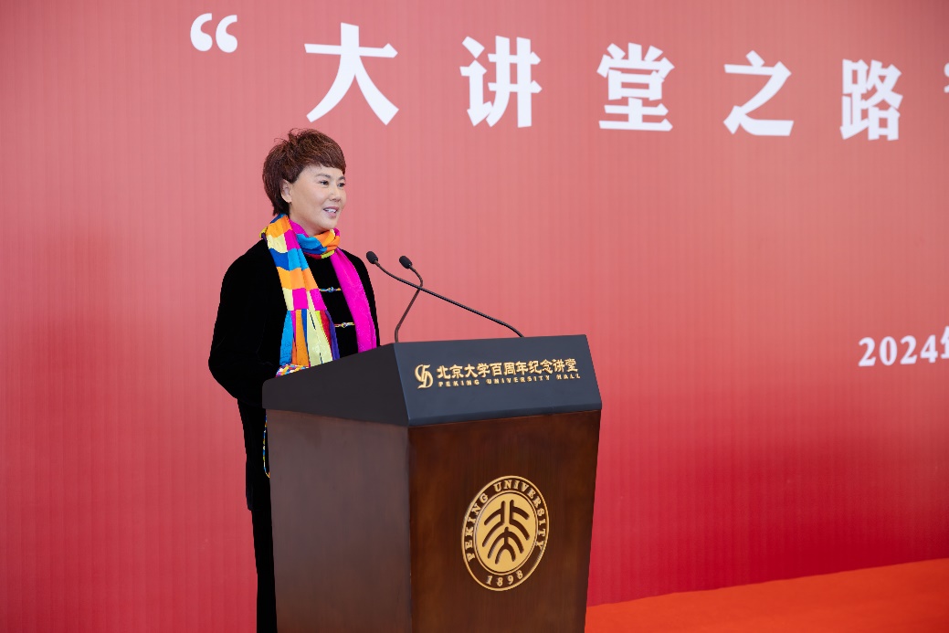 李莹在致辞中深情回顾了自己在北大及大讲堂度过的难忘青春,希望通过支持此次展览,让更多学子了解北大深厚的历史文化底蕴与美育传承,在文化与艺术的精神滋养中坚定自我,开拓视野,实现全面发展。