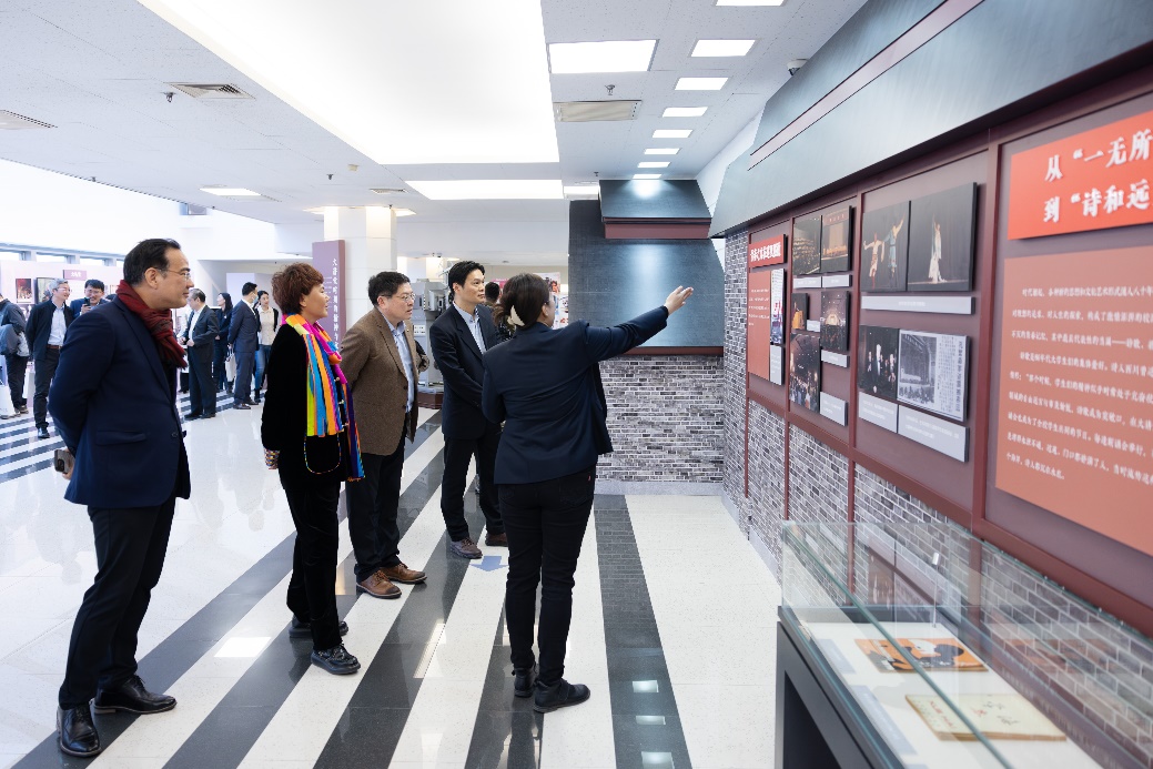 董志勇、杨雄、任羽中、董强、李莹与会议中心原主任范强,总务部部长、会议中心原主任、百周年纪念讲堂管理部原主任张胜群,会议中心原副主任、百周年纪念讲堂管理部原主任刘寿安共同为展览揭幕。随后,领导嘉宾共同观展。