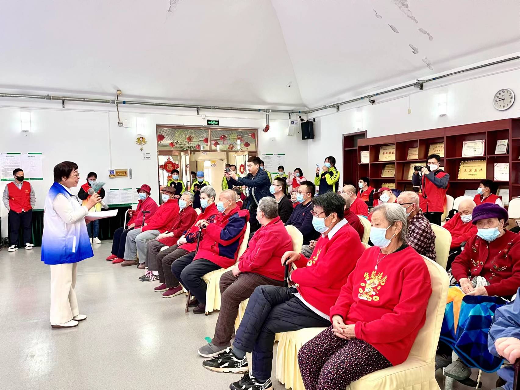 安丽娟代表向参加活动的26位老人宣讲了全国两会、北京市两会聚焦养老话题建言资政的相关精神,与老人热情交谈,并亲口讲述了模西院区10位老人的光荣事迹。从1935年参军、先后经历抗日战争和抗美援朝炮火洗礼的爱国老兵,到将青春献给科研事业攻克多项技术难关的优秀工程师,安丽娟代表用一个个动人心弦的故事,将老人的青春奋斗史一一呈现,现场掌声不断。相关领导和志愿者代表向老人们送来鲜花,致以崇高敬意。