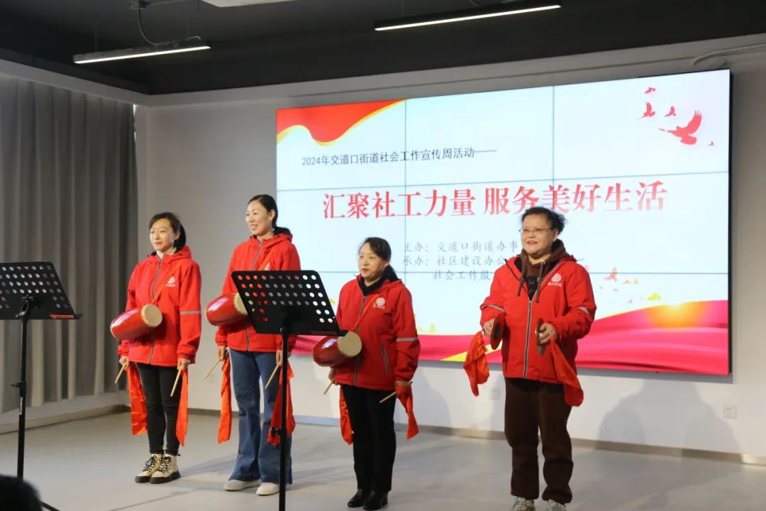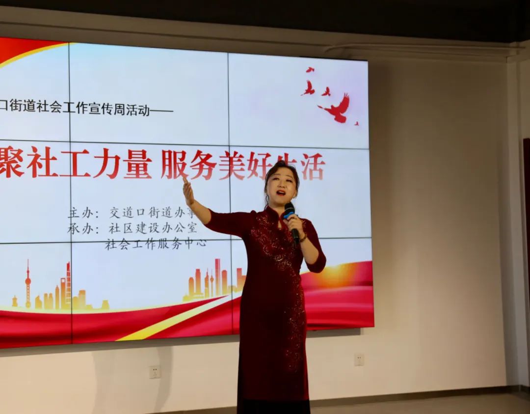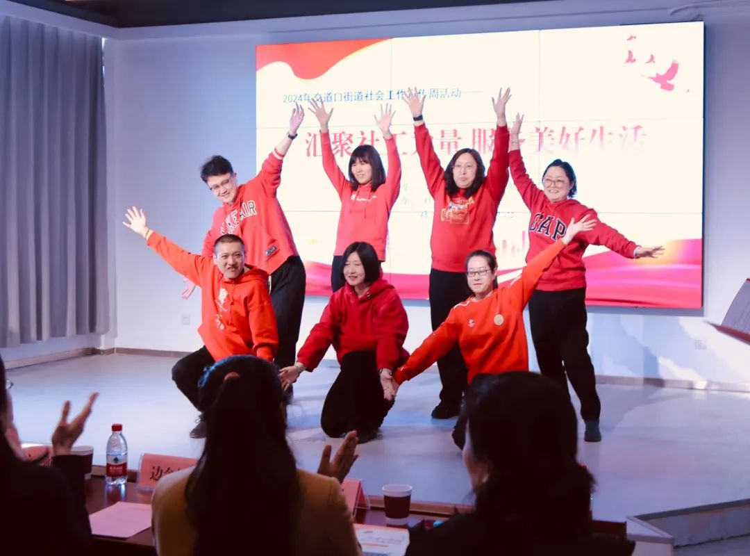 整个活动分为“专业有力量”“服务有温度”“社工表彰”三个环节。由社工们表演的舞蹈《相亲相爱一家人》为活动拉开序幕,展现了温馨和谐的社区氛围。