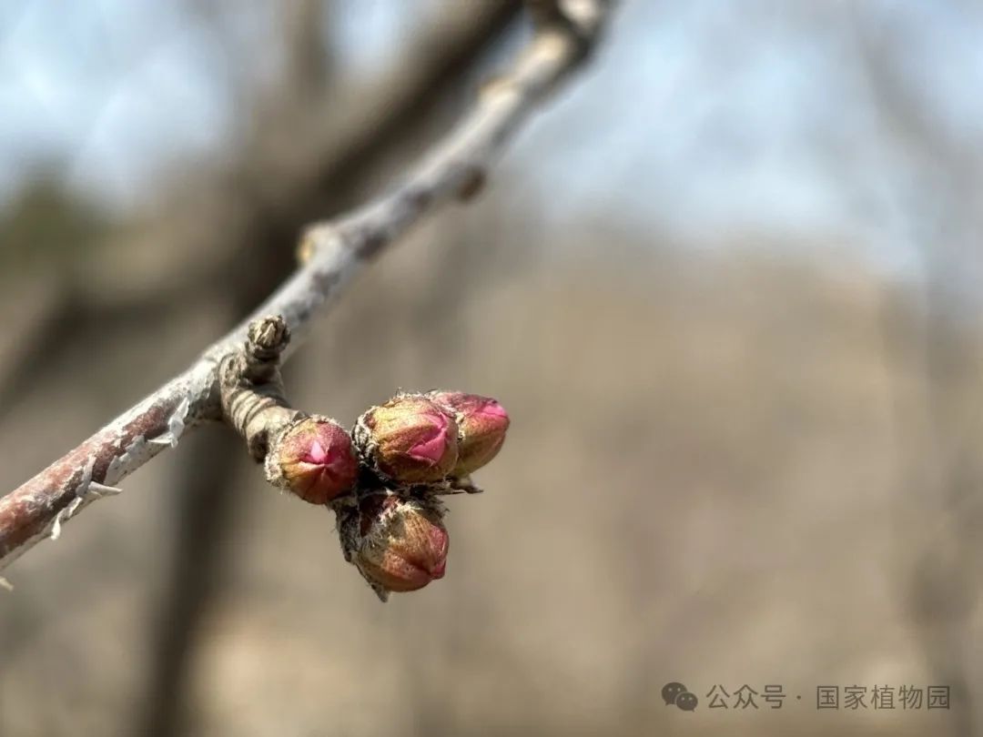 ▲有些山桃花蕾期柱头探出花冠外,花药位于柱头下方促进异花授粉