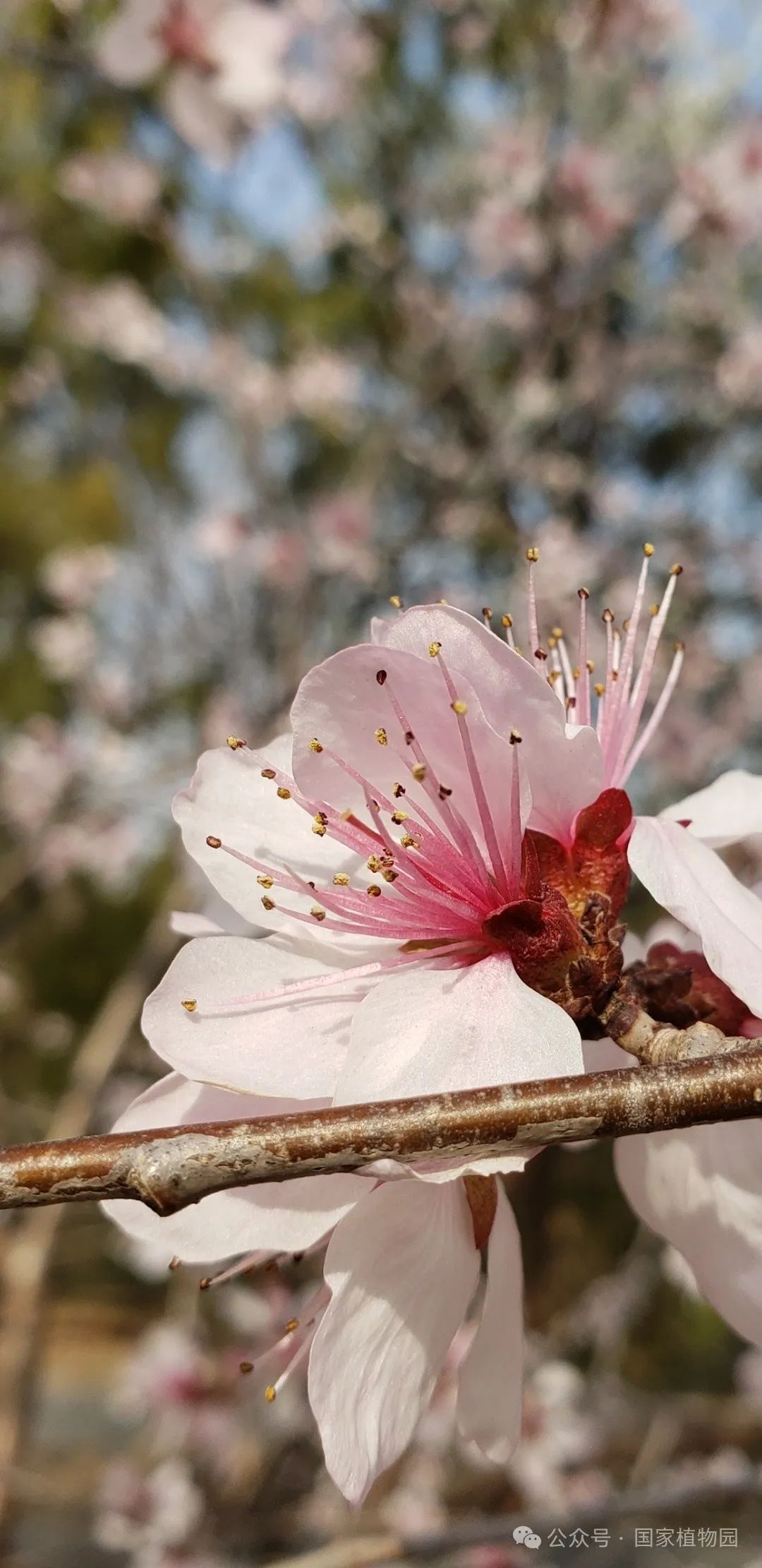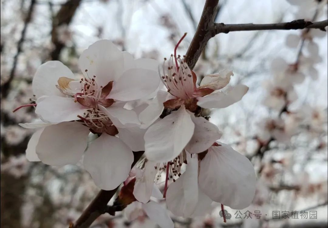 ▲授粉后的山桃花瓣和雄蕊花丝会逐渐变红