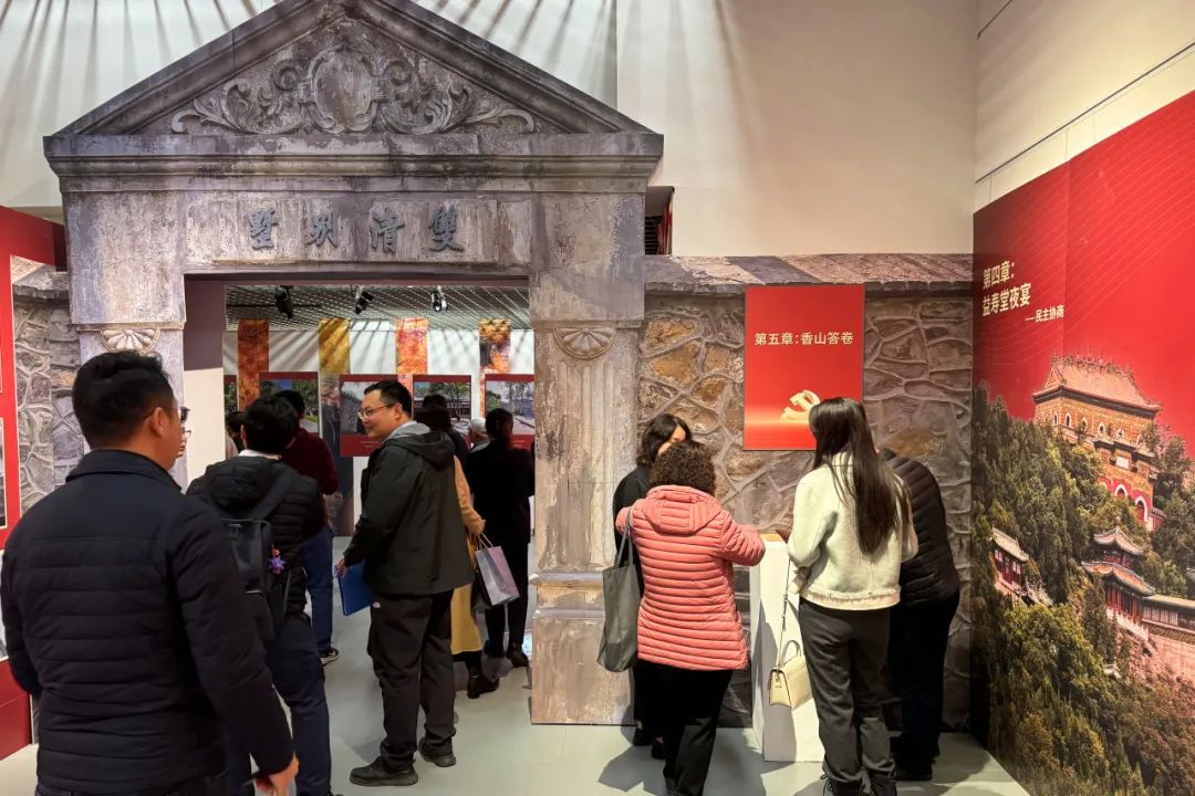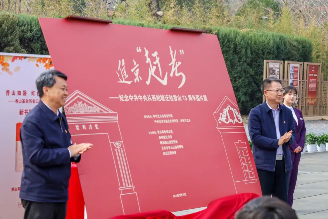 之后,大家来到香山革命纪念馆,举办了《进京“赶考”——中共中央从西柏坡迁驻香山75周年图片展》开幕式、《香山如磐 红色永续——香山革命历史口述文辑》新书发布会、《“进京赶考之路”沿线革命类纪念馆协同发展战略合作框架协议》签署仪式以及“京”彩文化之“红色行”启动授旗仪式等。