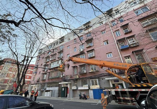 工作人员借助云梯,利用电锯、绿化剪刀等专业工具,将杂乱生长及枯死的树枝进行修剪。为防止掉落的树枝给居民造成意外伤害,社区工作人员提前在居民微信群发送温馨提示并在现场劝告过往居民远离施工现场,疏散周围车辆、维护现场秩序。