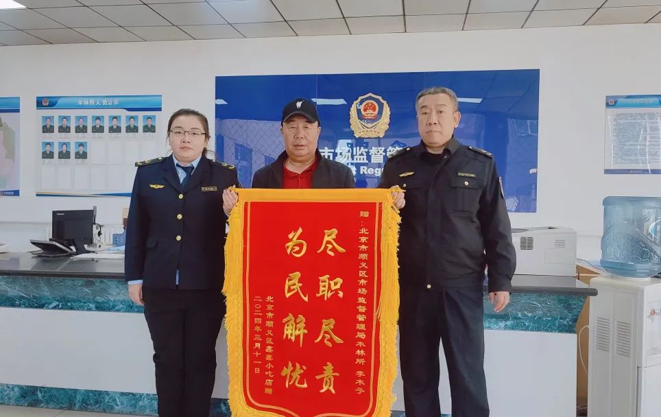 李木子的全心全意为人民服务的工作态度得到了杨女士及家人的一致认可,杨女士特意委托爱人将锦旗送至木林市场所,向工作人员提供热情高效优质的服务表示感谢。