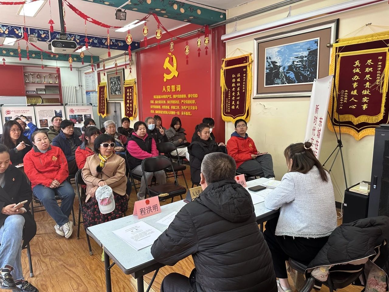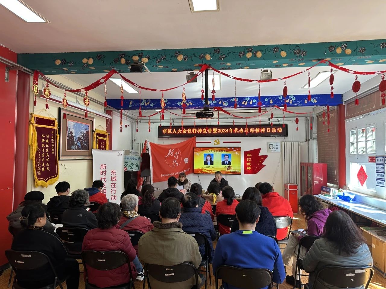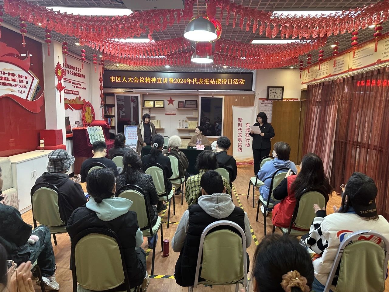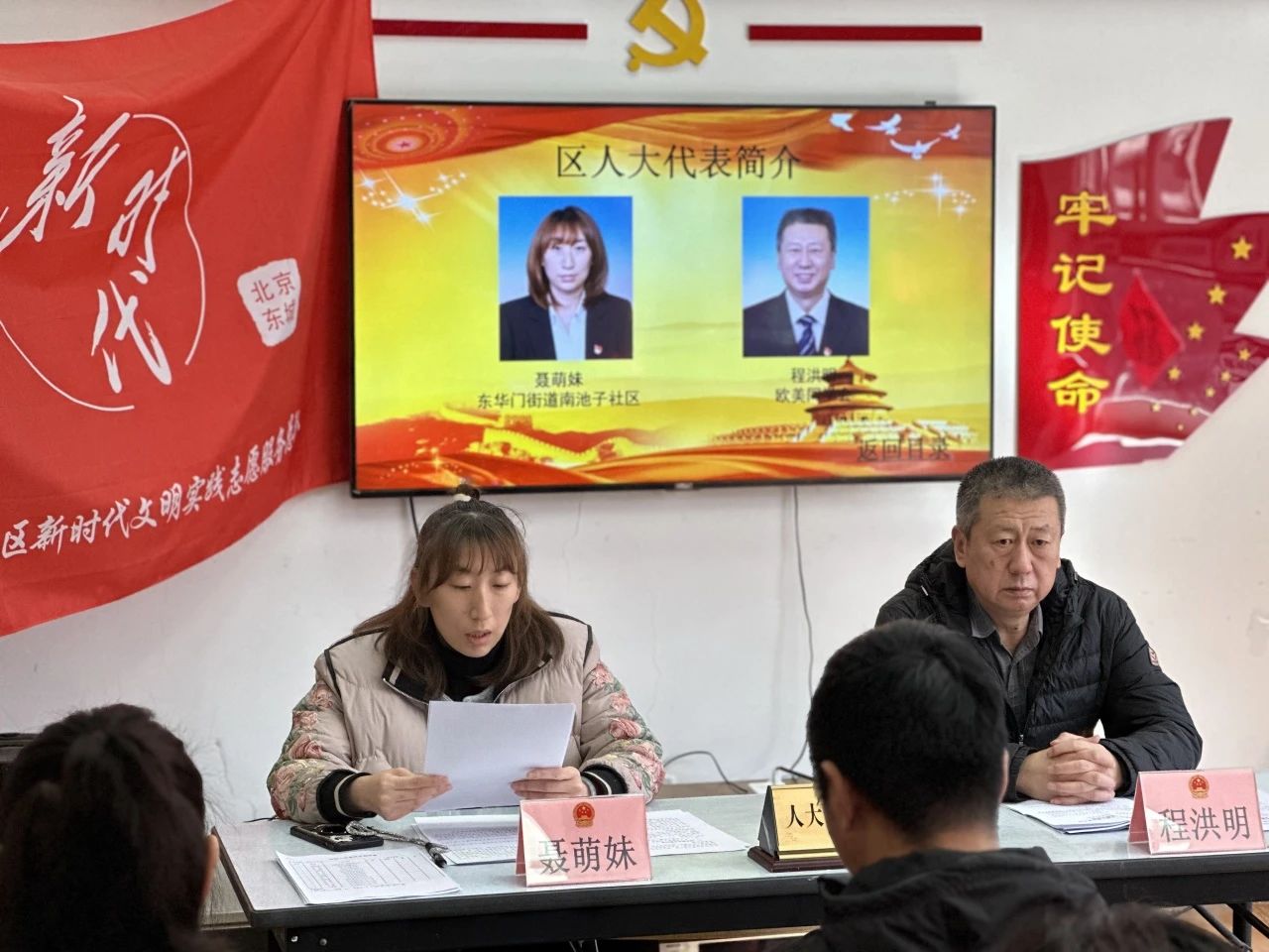 市、区人大代表聂萌妹,区人大代表程洪明在南池子社区人大代表联络站宣讲并接待居民群众代表。