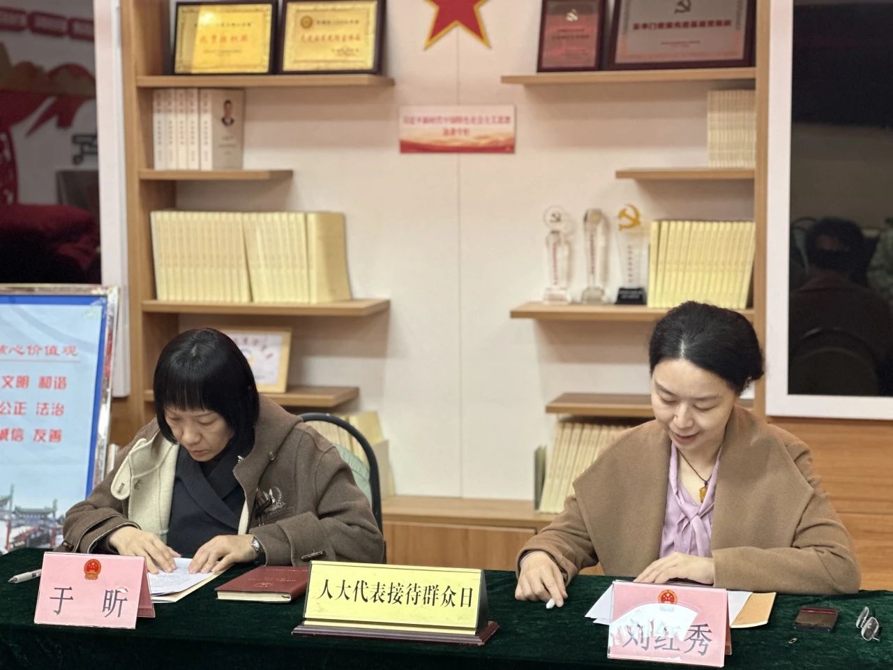 区人大代表于昕、刘红秀在韶九社区代表联络站宣讲并接待居民群众代表。