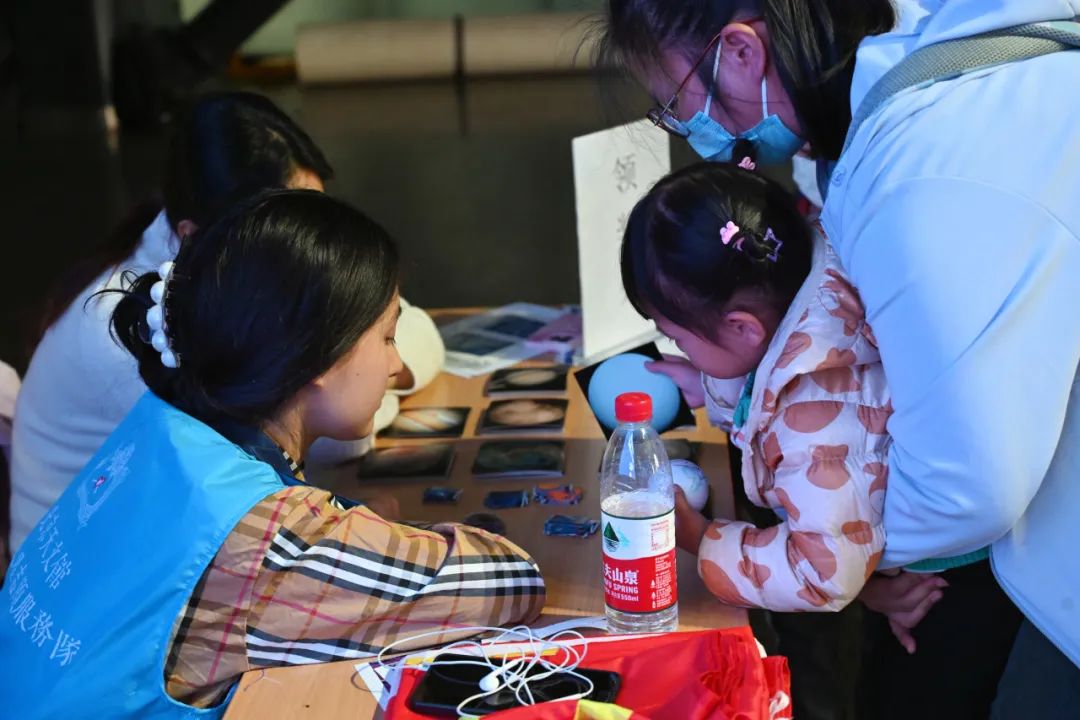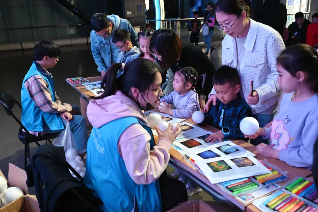 活动当天,北京师范大学天文系志愿者耐心地向观众介绍太阳系中行星的特点,引导观众观察行星表面特征,以便更好的表现在绘画中。观众用彩笔将所学到的行星知识绘制到行星模型上。他们认真地描绘着行星的形状、颜色和纹理,力求表现出每处细节。绘画完成后,观众还收到了志愿者们带来的精美邮票和明信片奖品,为活动增添一份珍贵的回忆。