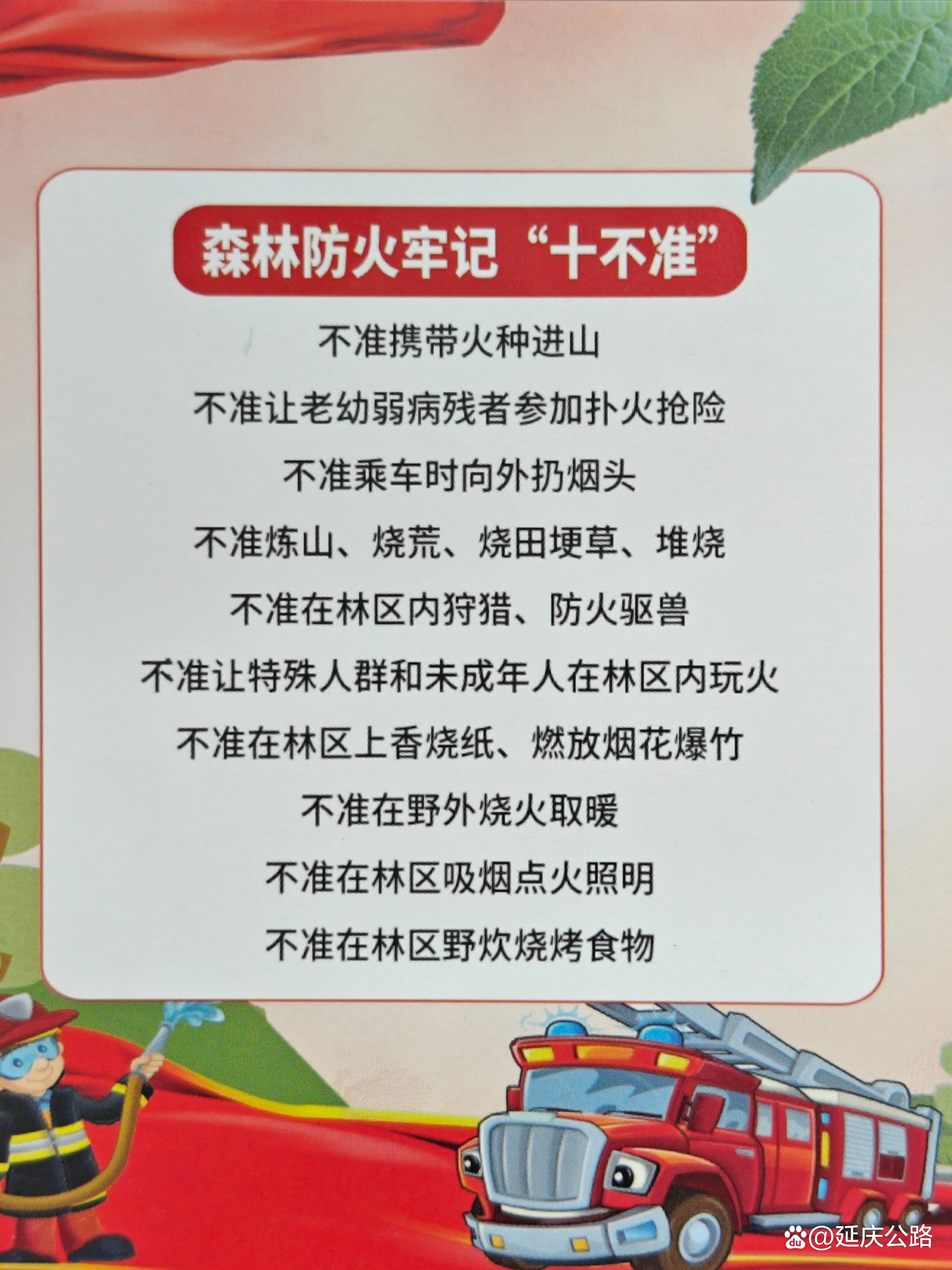 通过向一线工人和作业司机发放<森林防火十不准>知识卡片,切实扩展宣传教育覆盖面,压实森林防火责任,促进对森林防火的关注度。一张张“口袋卡片”可以随时放在一线工作人员的口袋里,便于随时开展森林防火自律提示,森林防火宣传教育入脑入心。