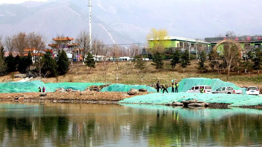 区水务局所负责的门城湖部分修复工程涉及河道长度5.24公里,包含河道疏浚、筑堤挖土、岸坡回填、垃圾外运等,目前已完成总工程量的61.3%。据了解,为了防止施工过程中的扬尘污染和水土流失,区水务局铺设防尘绿网,提升河道周边的整体形象。