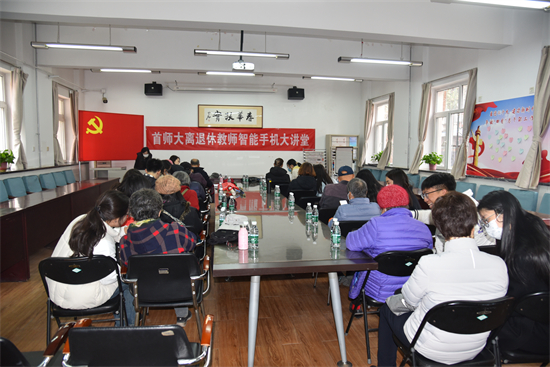 3月27日下午,首都师范大学在校本部老干部活动站101会议室举办离退休教师智能手机大讲堂活动。管理学院党委副书记李静、辅导员孙文敏带领学生党支部20余位党员承担了本次活动的培训任务,各院系、单位的离退休教师代表和离退休干部处全体工作人员参与了本次活动。