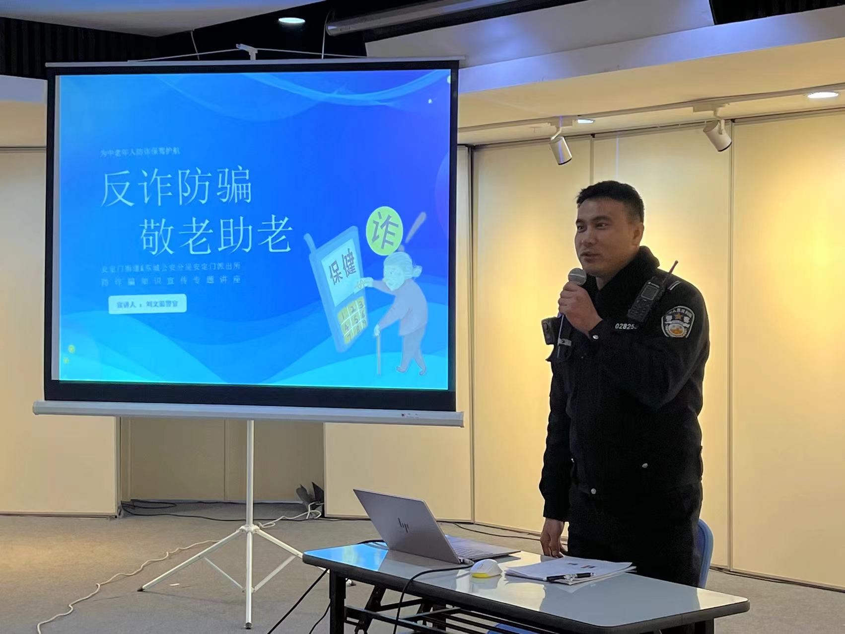 最后,安定门派出所刘文渠警官以案说法,为辖区社会化退休人员开启了一堂生动、实用的反诈知识讲座。大家纷纷表示:这次仪式让我们看到了街道对退休人员的重视和关爱,小课堂介绍的反诈知识,对我们提高警觉,防止受骗,帮助很大。