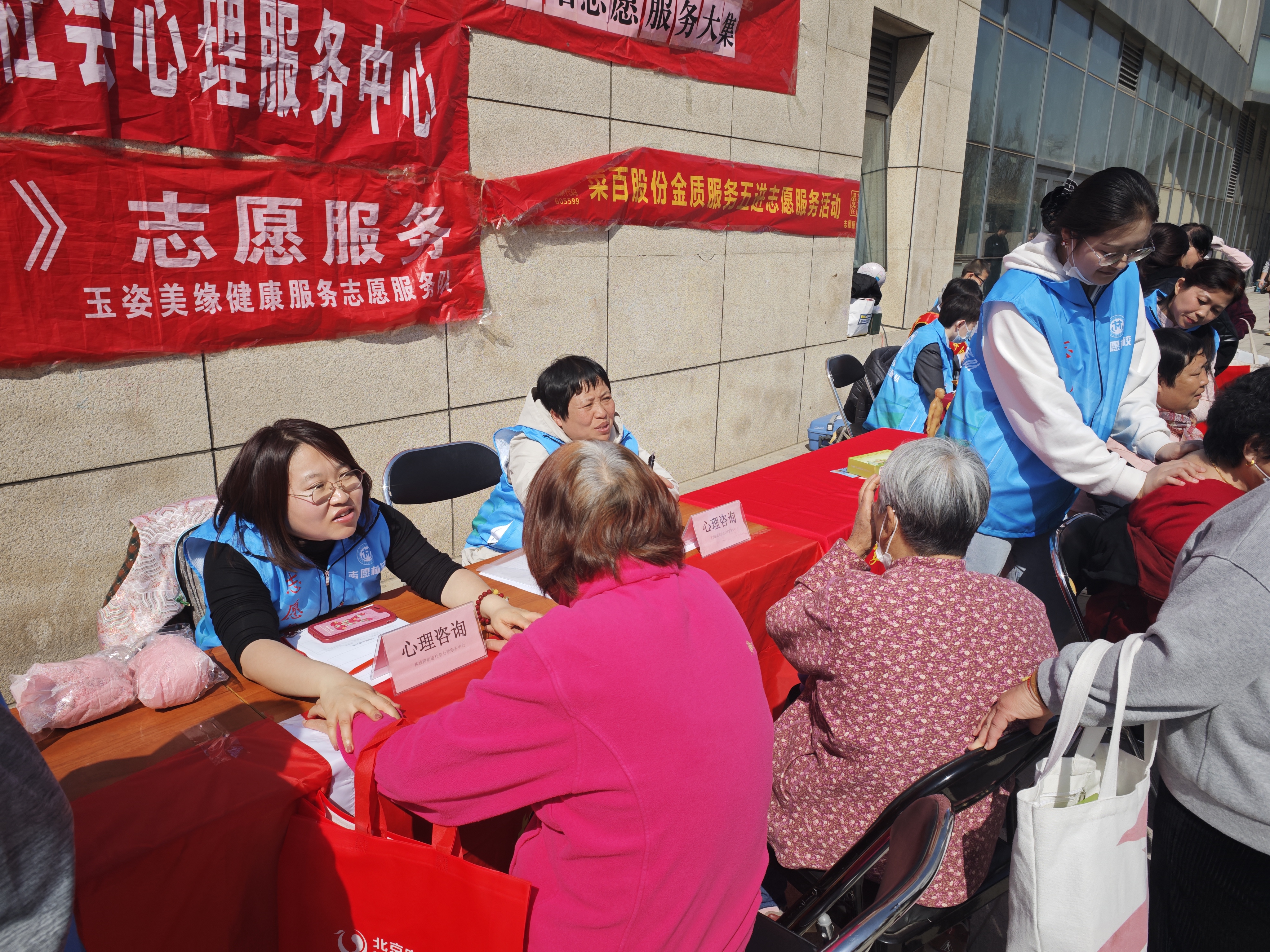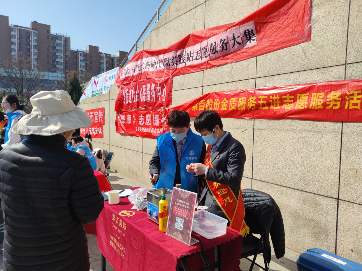 本次大集以服务居民为核心,旨在通过多样化的免费服务活动,提升居民的生活品质,共建和谐社区。活动现场,来自各界的志愿者提供了丰富多彩的服务。在心理咨询区,专业心理咨询师现场为居民提供免费咨询服务,帮助大家解答生活中的心理困惑。健康义诊区,骨卫士中西医结合医院和京南中医的专家们免费为居民把脉问诊,提供健康建议。此外,现场还提供了免费按摩服务,让居民在休闲之余享受身心的放松。物质生活方面,菜百首饰为居民提供了免费清洗首饰和绳结编织服务,以保障居民的饰品光彩夺目。与此同时,农商银行大兴支行联港嘉园分理处反诈宣传团队也在现场向居民普及防诈骗知识,提高居民的安全意识。