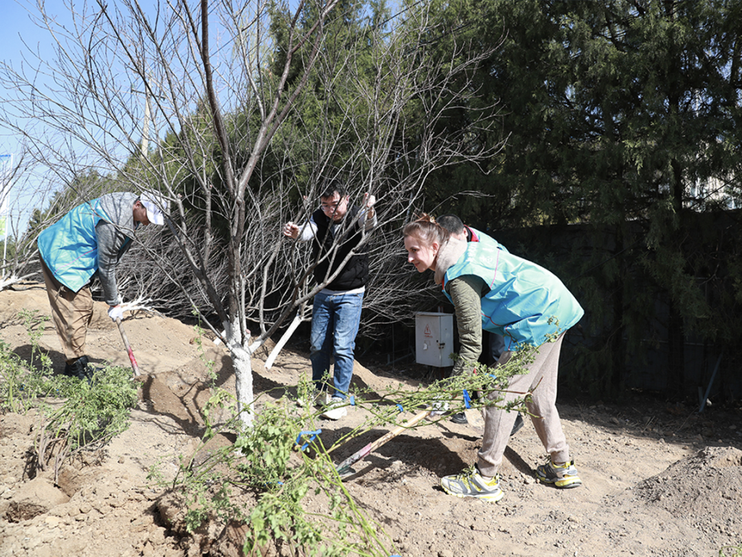 10时,记者在活动现场看到,中外居民分工协作,大家挥锹铲土、植入树苗、培育新土、提水浇灌,忙得不亦乐乎,以实际行动为顺义增绿添彩。当天上午,中外居民一起种植了6株杜梨、14株紫叶矮樱、50株美蔷薇,丰富了园区植物种类,营造了全员爱绿、植绿、护绿、兴绿的浓厚氛围。