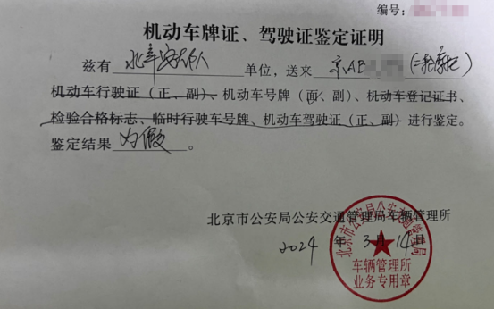 经车管所鉴定,该车辆所悬挂的“京AB****”机动车号牌为假。最终,驾驶人孙某某因实施使用伪造的机动车号牌的违法行为,将被处以罚款5000元、驾驶证记12分,并处15日以下行政拘留。同时,其在使用伪造号牌期间所产生的违法行为,也将一并承担相应处罚。