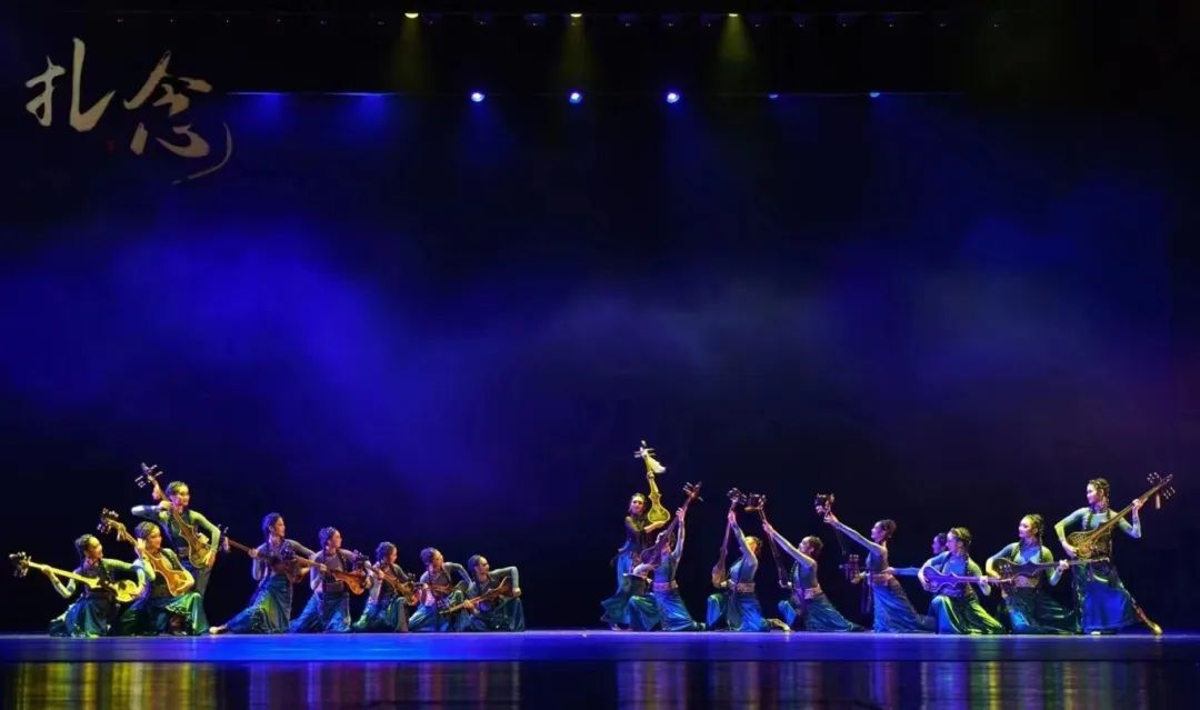 《扎念·木里》以铸牢中华民族共同体意识为创作主题,以非物质文化遗产“扎念琴”为题材,讲述了木里藏族自治县的一群少女,在雪域高原吟唱弹拨而舞之景,呈现出一幅人与自然和谐共处的美好画面。舞蹈巧妙运用“扎念琴”与“堆谐”,展现了藏族女子端庄又不失灵巧的曼妙之美,反映了木里藏族人民的审美情趣、生活气息以及人文精神生活。通过这种方式,舞蹈彰显了独特的木里藏族特色以及民族文化的传承,表现出了扎念文化在这片肥沃土地上的生生不息和代代相传,更是表达了人们对现实生活的赞美之情。