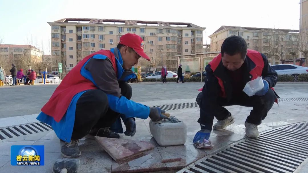 “云北小区21人针对路面破损、墙面破损进行集中维修。对小区卫生死角进行集中清扫,张贴文明养犬公示牌,在居民群内发送文明养犬通知。”云北小区物业管理处项目负责人张然介绍道。