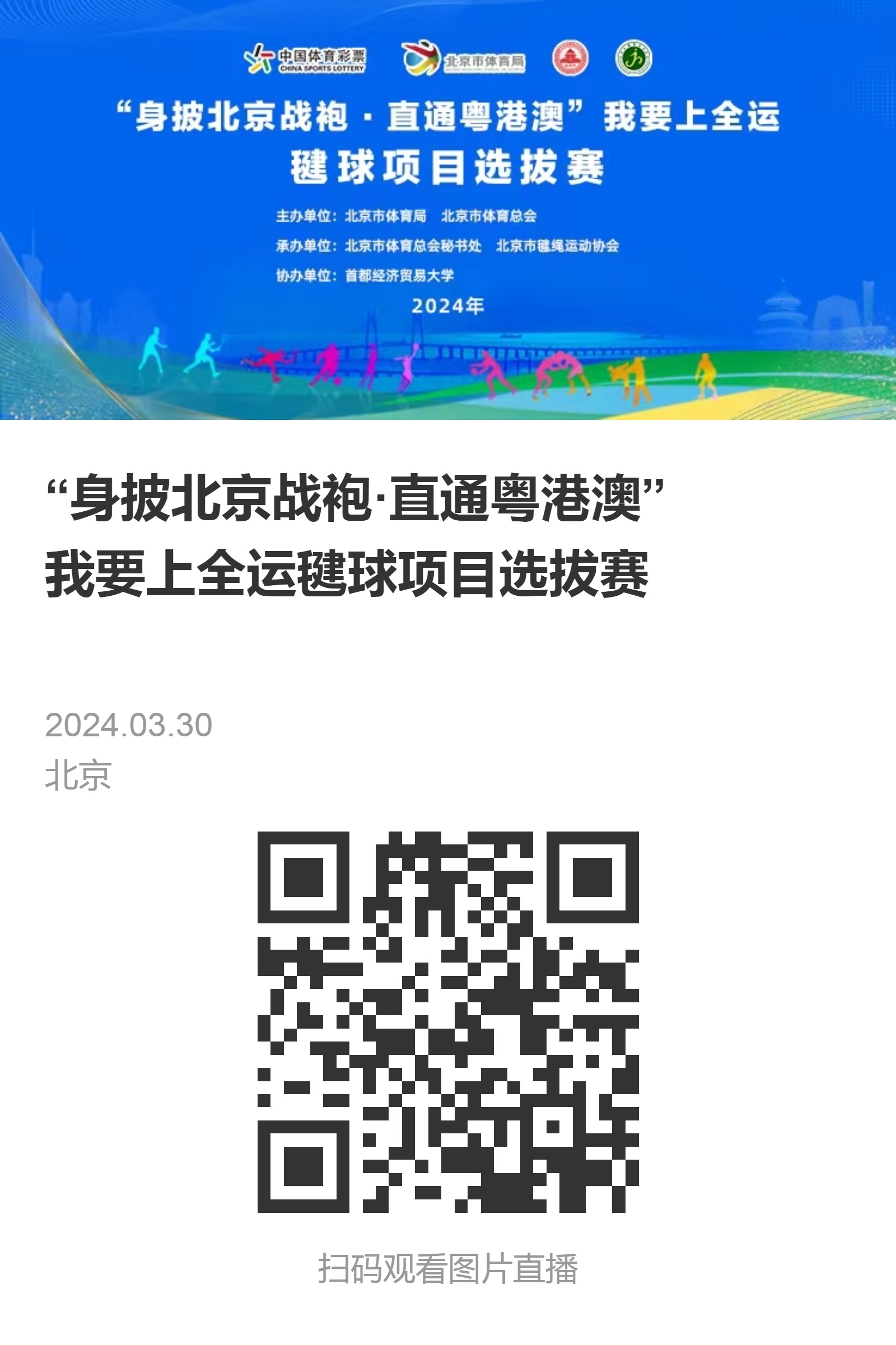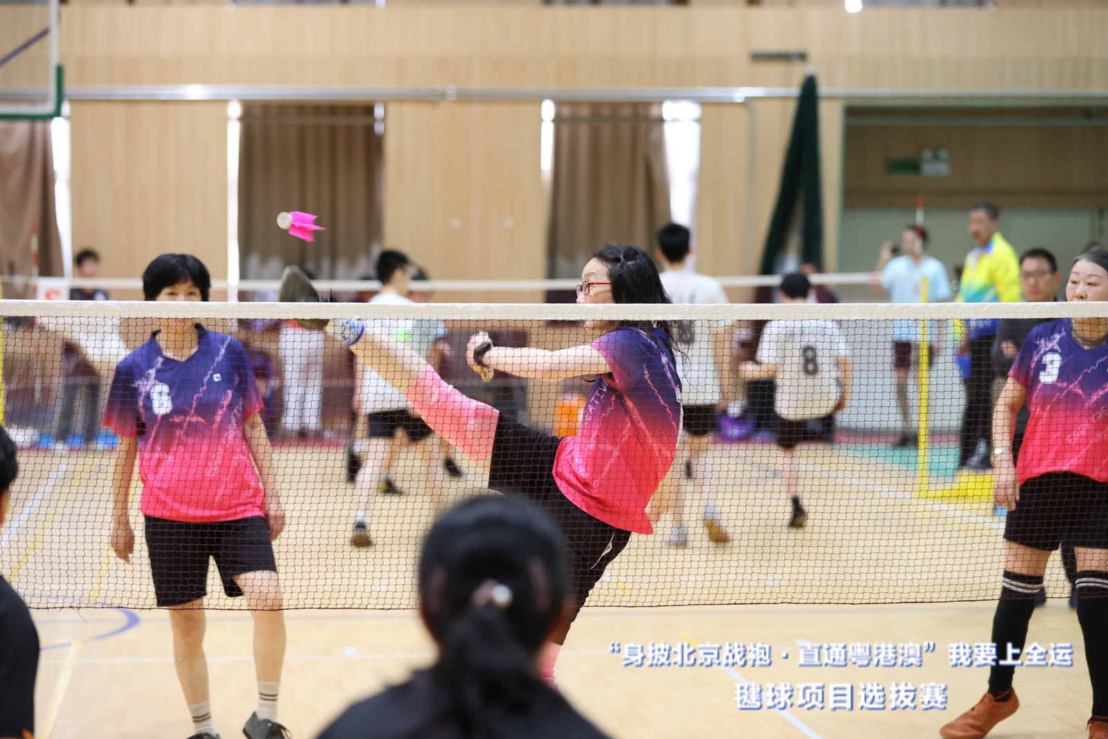 3月30日,“身披北京战袍·直通粤港澳”我要上全运毽球项目选拔赛在首经贸大学体育馆举办,本次比赛由北京市体育局 、北京市体育总会主办,北京市体育总会秘书处、北京市毽绳运动协会承办,比赛旨在选拔出优秀毽球运动员,备战2025年在粤港澳地区进行的全运会。