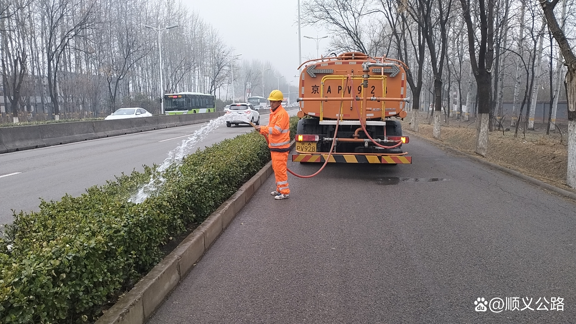 结合春季公路绿化返青水浇灌工作,对管养范围内沙地柏、油松、桧柏、草坪等易燃植物每日进行1次洒水湿化,有效降低火灾风险。安排养护人员对管养范围内隔离带、边沟、环岛等重点部位枯枝、落叶、杂草等可燃物再排查、再清理,3月以来共清理可燃物200余车,从源头上做好防火工作。