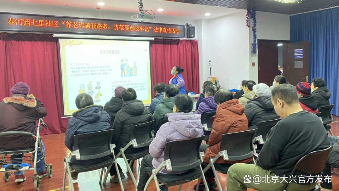 近日,亦庄镇泰河园七里社区开展“养老诈骗套路多,防范要点要记牢”法律宣传活动。工作人员通过以案释法的形式向老年人揭露养老诈骗的“套路”手法,帮助老年人提高识骗和防骗的能力,并结合养老防诈宣传视频向在场群众讲解养老诈骗的危害,揭露剖析“提供养老服务、销售养老产品”“享受免费旅游”等常见诈骗套路,叮嘱老年人切记不要相信天上掉“馅饼”,牢记“不听、不信、不转账、不汇款”,守护好自己的养老钱袋子。