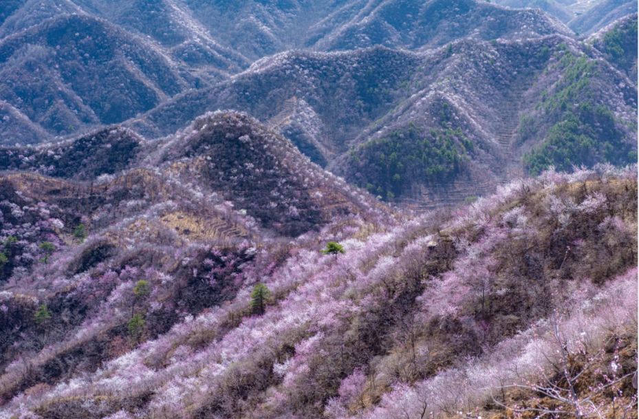 桃红复含宿雨,柳绿更带朝烟。这是王维诗里的春天,红色的桃花还含着隔夜的新雨,碧绿的柳丝更带着淡淡的春烟。而此刻,在延庆大庄科乡,山花正好,山间的诗情画意与村落相互掩映,让人沉醉其中,难分今夕何夕。