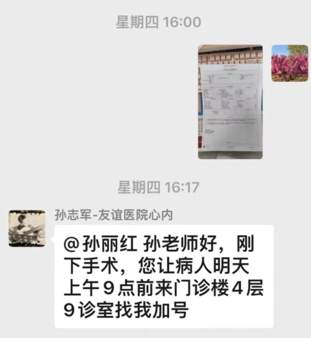 按照与友谊医院心内科双向转诊的相关工作流程,角门东里社区卫生服务站站长孙丽红通过“友谊+马家堡心律失常交流群”与友谊医院心内科主任进行了联系,在确认就诊时间后李蓓蓓医生为赵叔叔开具了转诊单。