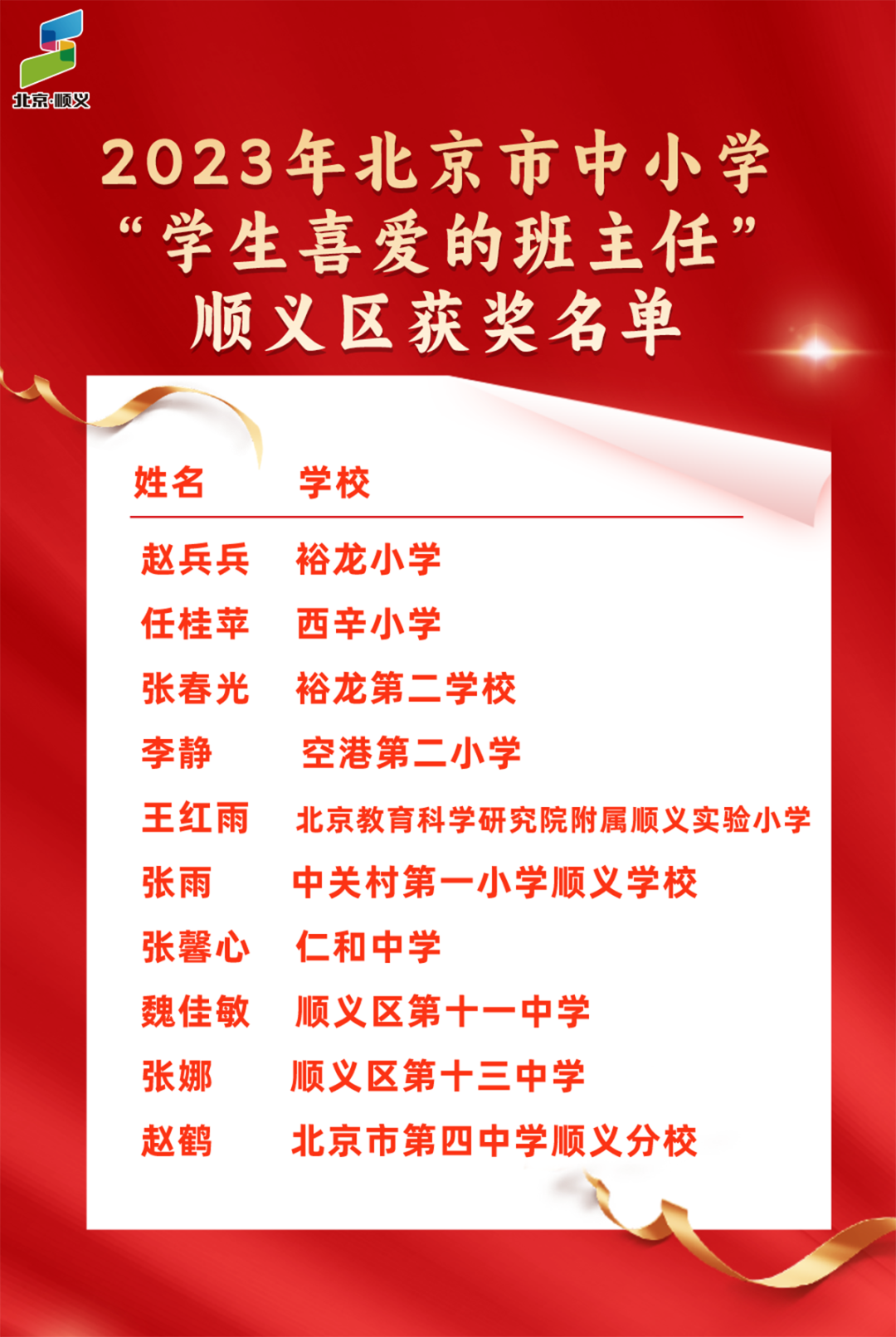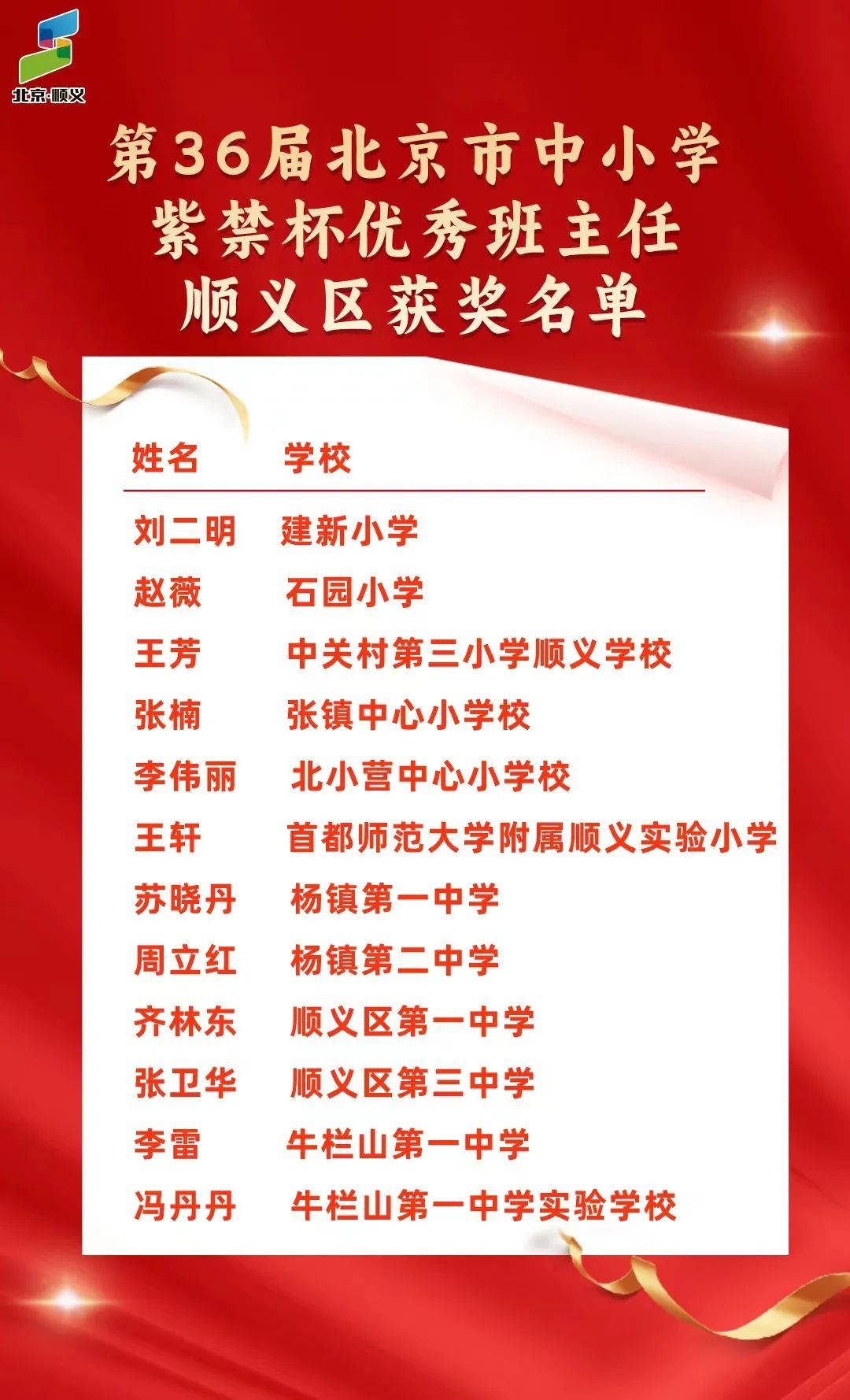 此外,顺义区还有12名教师获评第36届北京市中小学紫禁杯优秀班主任,10名教师获评2023年北京市中小学“学生喜爱的班主任”。快来看看有你的老师吗?