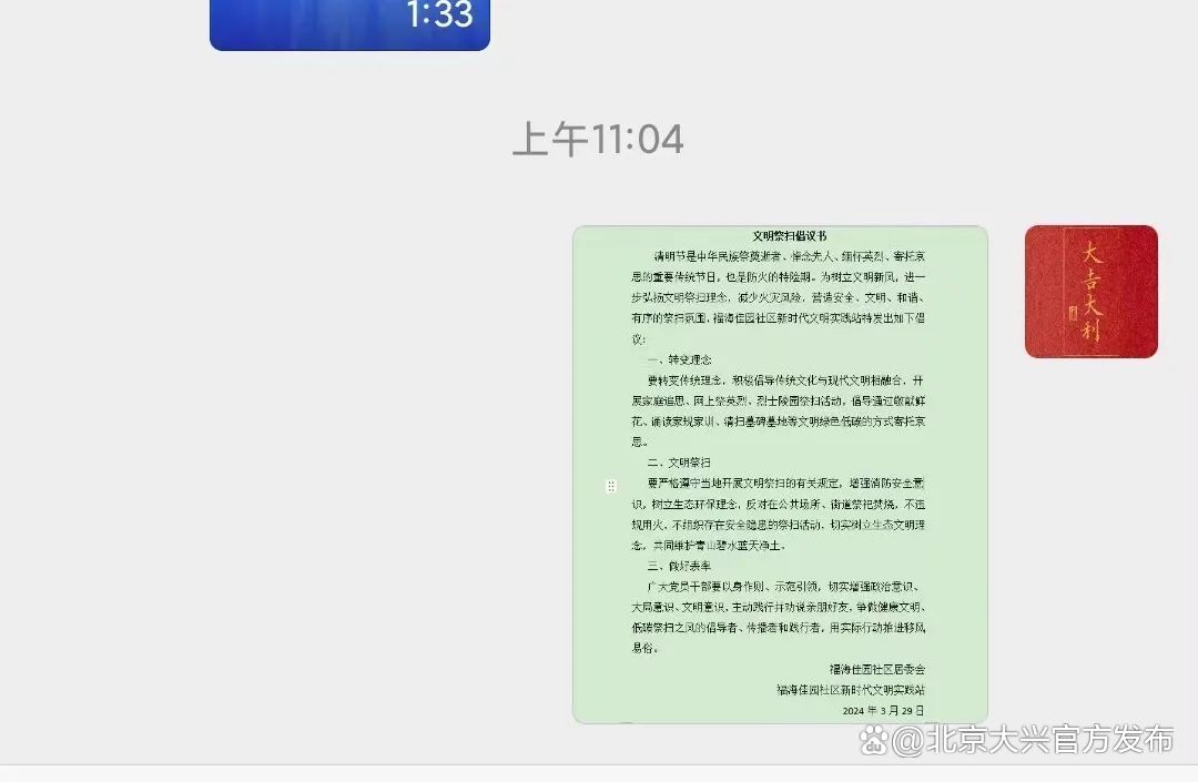 为进一步引导居民自觉摒弃上香、烧纸等祭扫习惯,弘扬中华民族传统文化,3月29日,福海佳园社区新时代文明实践站组织志愿者、居民们通过线上发送“文明祭扫”倡议书,线下开展“文明祭扫”宣传活动,多方式多途径宣传绿色低碳的文明祭扫,自觉做移风易俗的宣传者、推动者和践行者。