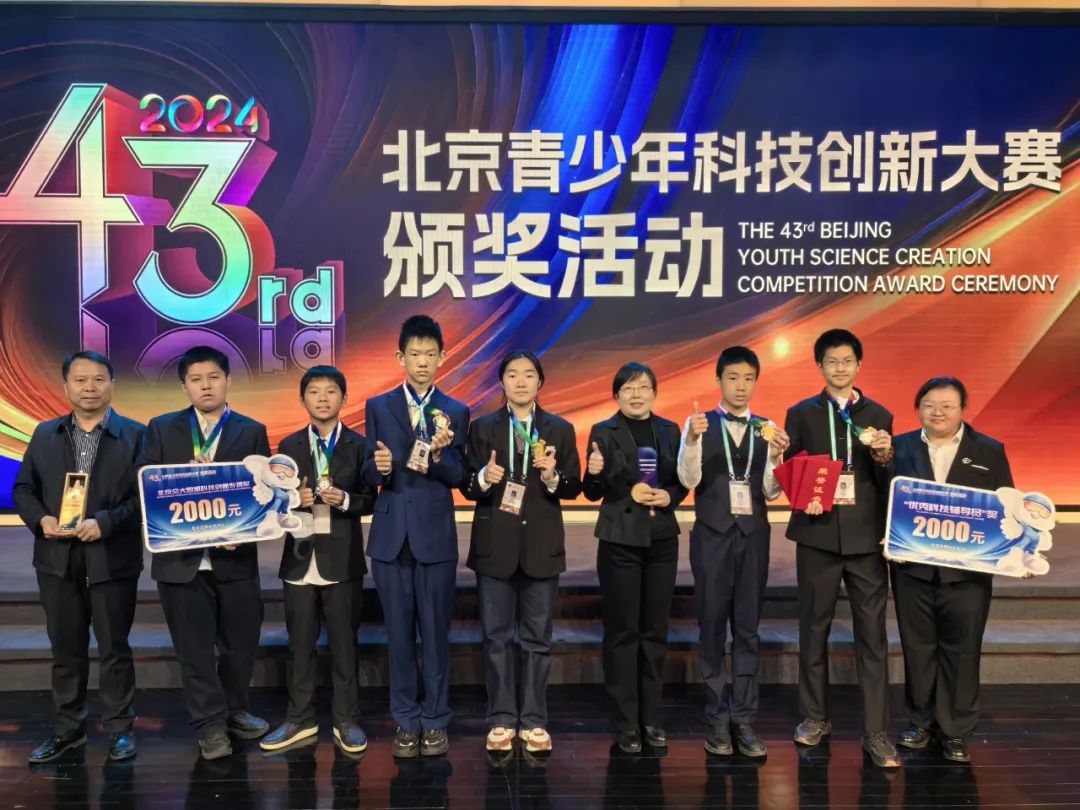 在刚刚结束的 第43届北京青少年科技创新大赛终评现场传来喜讯,石景山区学子经过激烈角逐,不负众望,四个参赛项目夺得两金两银的好成绩。其中,古城中学张子仁同学斩获 “北京交大思源科技创新”和 “发明创新”两个专项奖,项目辅导老师姚春林、王可欣、郭新也荣获 “优秀科技辅导员”专项奖。北京市第九中学朱立坤老师喜获 “十佳科技辅导员”,石景山区实验中学王红光、张子婧老师获 创客教师项目一等奖,石景山区科协也同时获得 优秀组织奖。