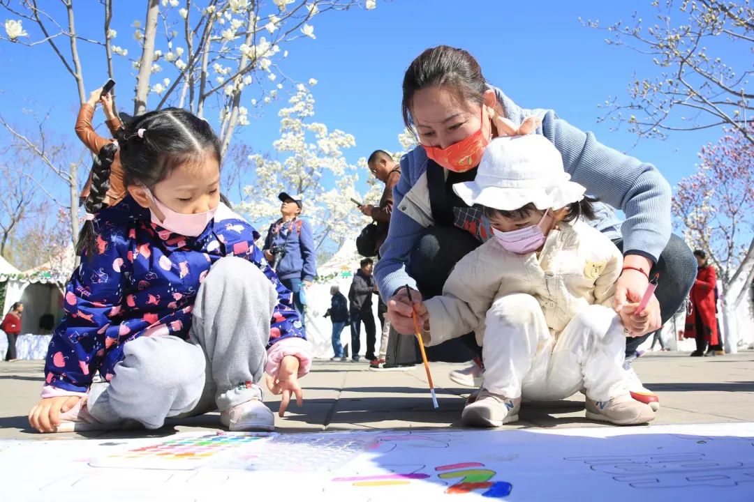 在满树盛开的玉兰之下插花品茗;看“花朝祈福大赏”“花朝舞台秀”“百花仙子”巡游。参与春日阅读活动,感受书香石景山;与非遗传承人一同打花棍、抖空竹。