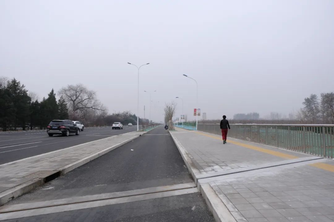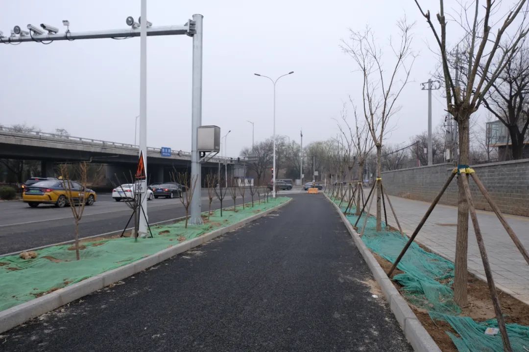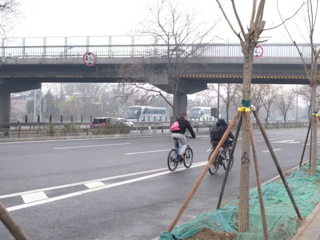 沿途可以看到,经过改扩建后的京藏高速北辅路设置了三条机动车道、一条非机动车道、一条人行步道,机动车、非机动车、行人均拥有由绿化带分隔开的相对独立的通行环境。