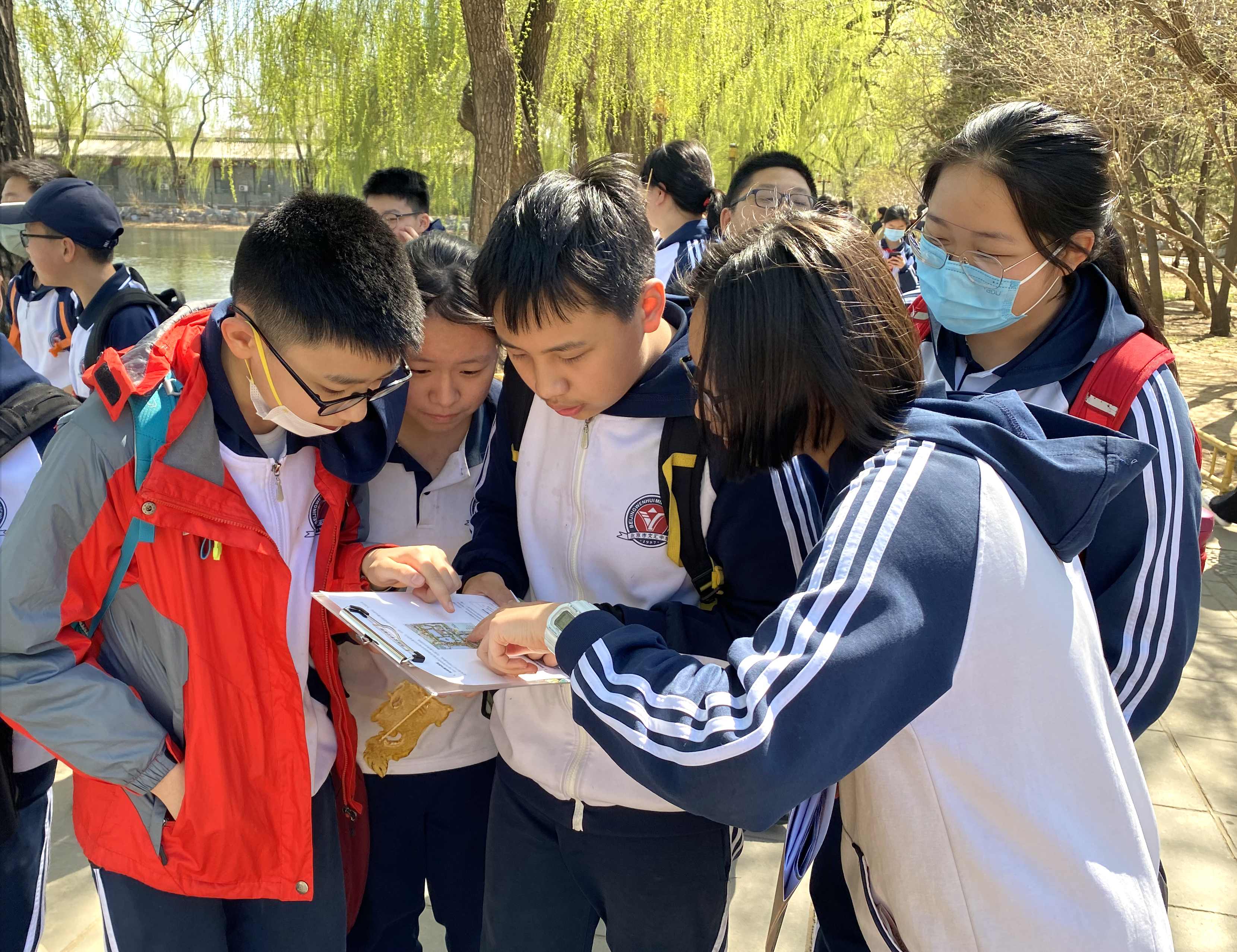 据悉,活动前期,学校教科研联合数学、语文、物理、历史四大学科教研组长和骨干教师,结合圆明园遗址公园资源涉及知识领域,为本次项目式学习精心设计并印制了学生实践活动手册,预设四个真实情境和六大探究主题。前往圆明园前,学生们已经选择了自己感兴趣的探究主题自发组成小组。