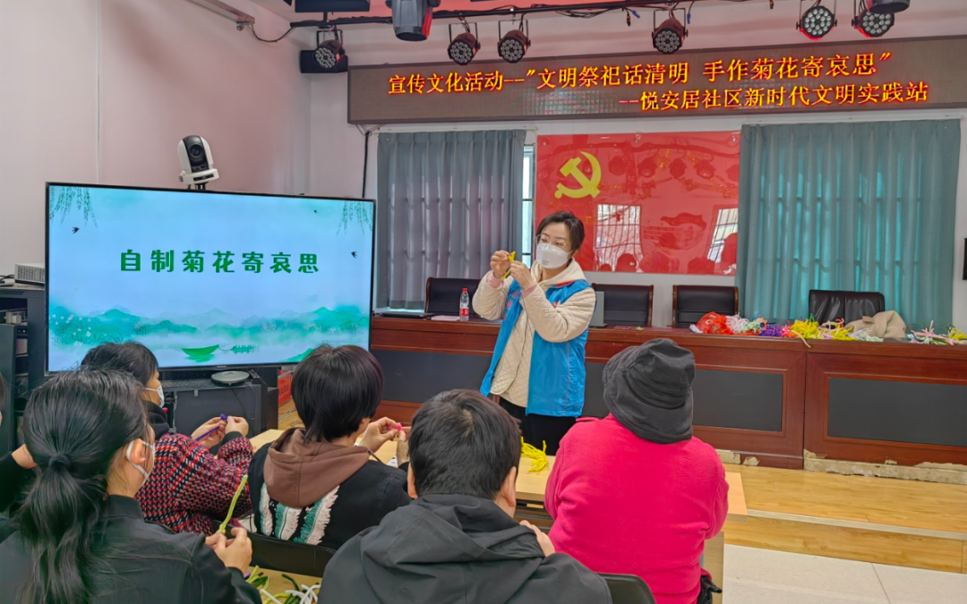 此外,儒林街道温泉南区东里、胜芳园、悦安居等社区开展文明祭扫、手工花束制作等丰富多彩的活动,发挥民族传统节日思想熏陶和文化教育功能,丰富市民群众的精神文化生活。