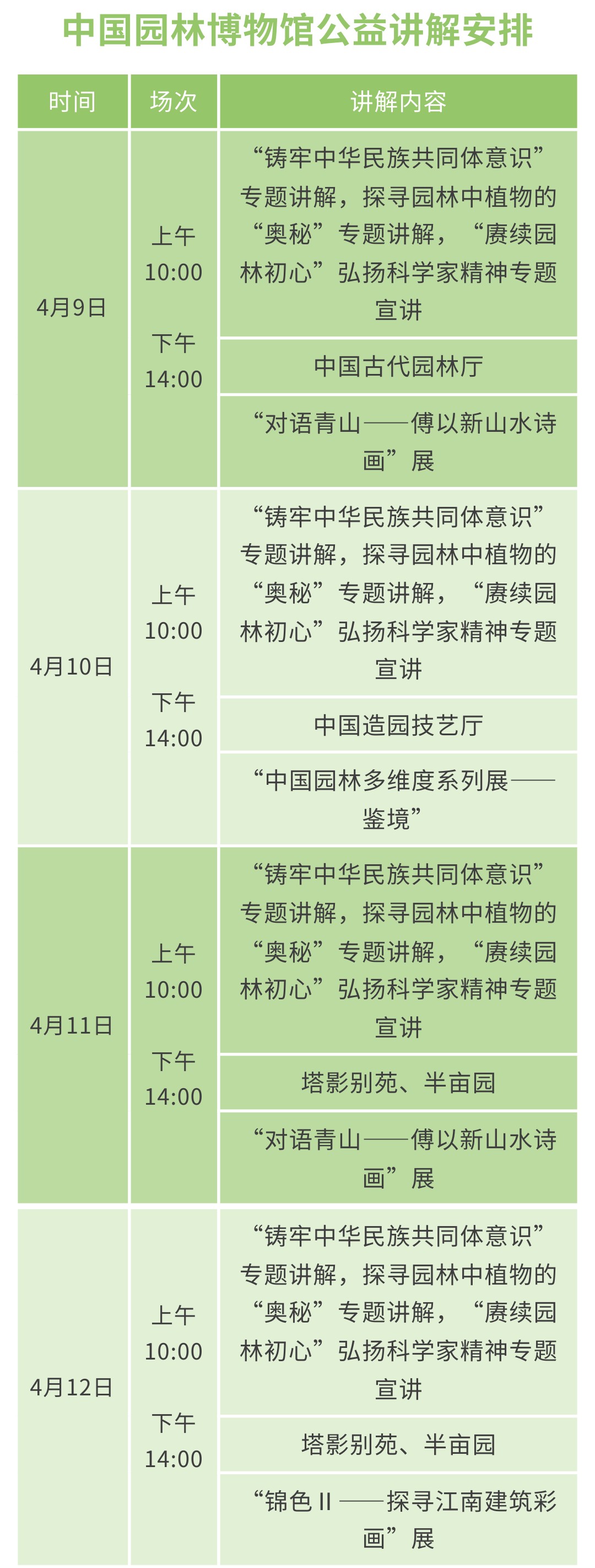 中国园林博物馆 公益讲解安排(4月9日—4月12日)