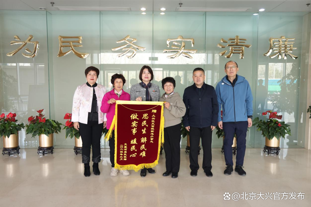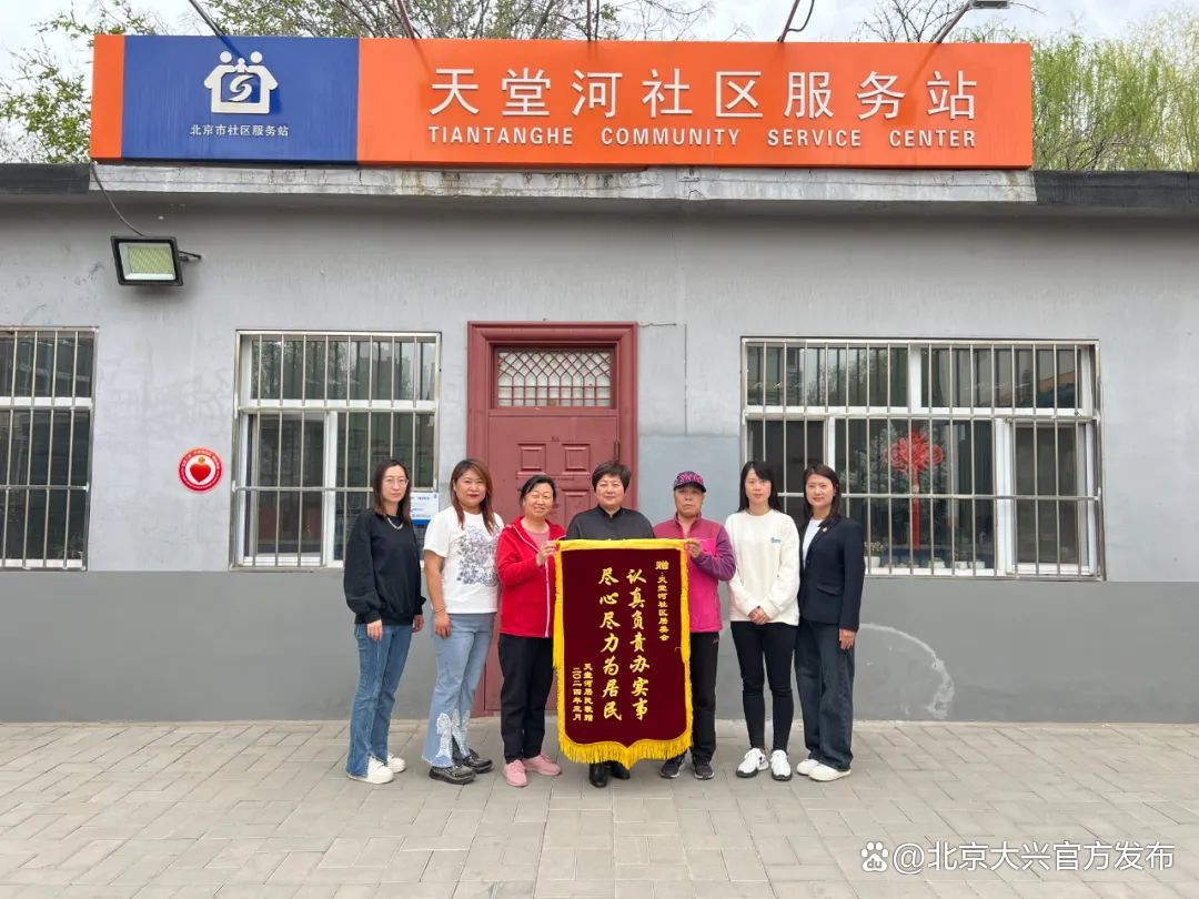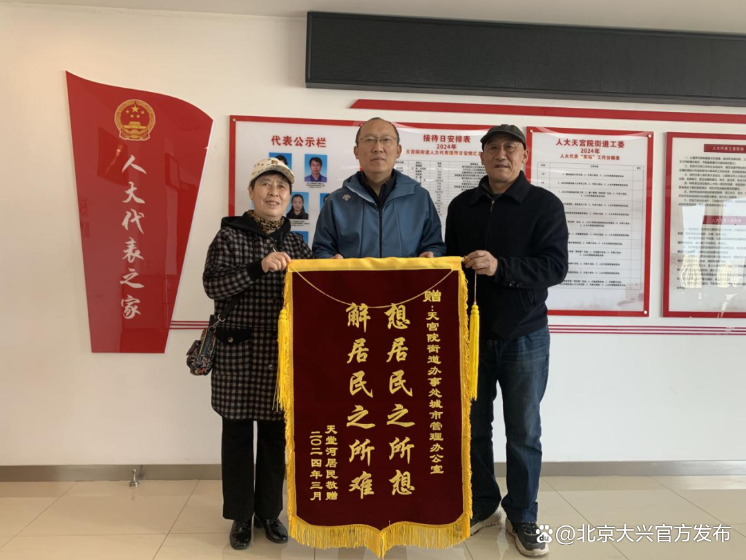 “思民生,解民难,做实事,暖民心”“想居民之所想,解居民之所难”“认真负责办实事,尽心尽力为居民”,近日,天宫院街道天堂河社区居民组团送来三面金灿灿的大锦旗,在春光的照耀下,格外灿烂、暖意融融。