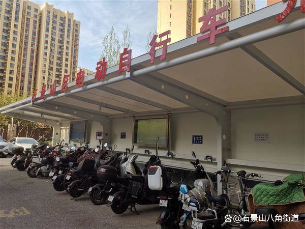 在八角街道及相关部门的共同努力下,经过地勘、选址、规划、征询民意、施工等环节,将小区有效空间整合利用,新建了8处便民充电车棚,新增了194个充电端口,并在车棚内安装了消防安全设施。同时,为杜绝居民居家充电现象,社区联合物业在每个单元电梯内安装了阻车器,从技术手段避免居民居家充电。