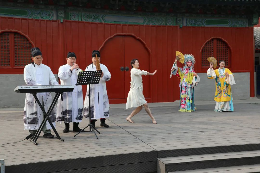 此次,北京东城文化发展研究院联合北京舞蹈学院人文学院教授、中国艺术管理教育学会学术委员会副主任张朝霞及北京地区高校大学生“戏曲及舞蹈户外表演研创共同体”共同策划,将传统京音乐非遗与现代唱腔、舞蹈演绎交相融合。
