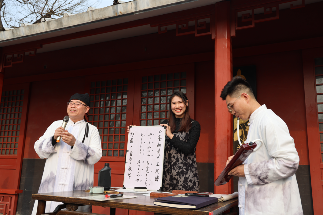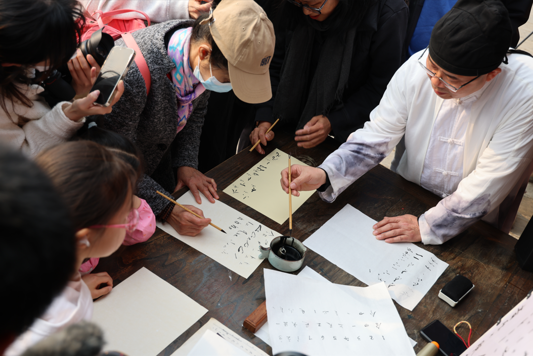 除了精彩的演出,现场还设置了即兴音舞环节和文化艺术普及。在梨花树下,来自北京舞蹈学院、中央民族大学、中国戏曲学院的学生,通过音乐、舞蹈、戏曲等艺术门类的跨界表演和即兴呈现,为游客带来了视觉与听觉的双重享受。而工尺谱的普及游戏,让游客们在识谱、唱谱、誊写等互动中,体验到非遗文化的独特魅力。