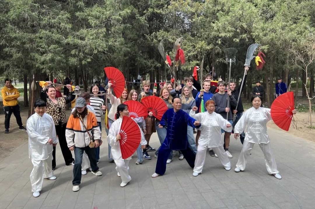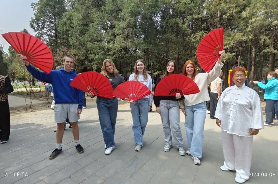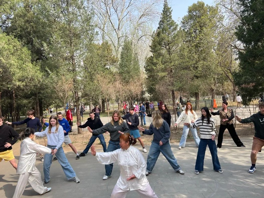 4月1日至10日,代表团同北京钱学森中学北校区开启了本年度首轮中比学生交流互访项目。4月8日,在市对外友协、京促会的安排下,在京促会会员单位北京市武术运动协会的大力支持下,上午代表团赴天坛公园参与市民晨练,比利时青年学生首次体验武术、太极拳、踢毽子等中国传统体育项目;下午赴京促会会员单位北京国际汉语研修学院参观交流,学习了甲骨文、亲手完成整套木活字印刷,亲身体验汉字的魅力和中国文化的博大精深。