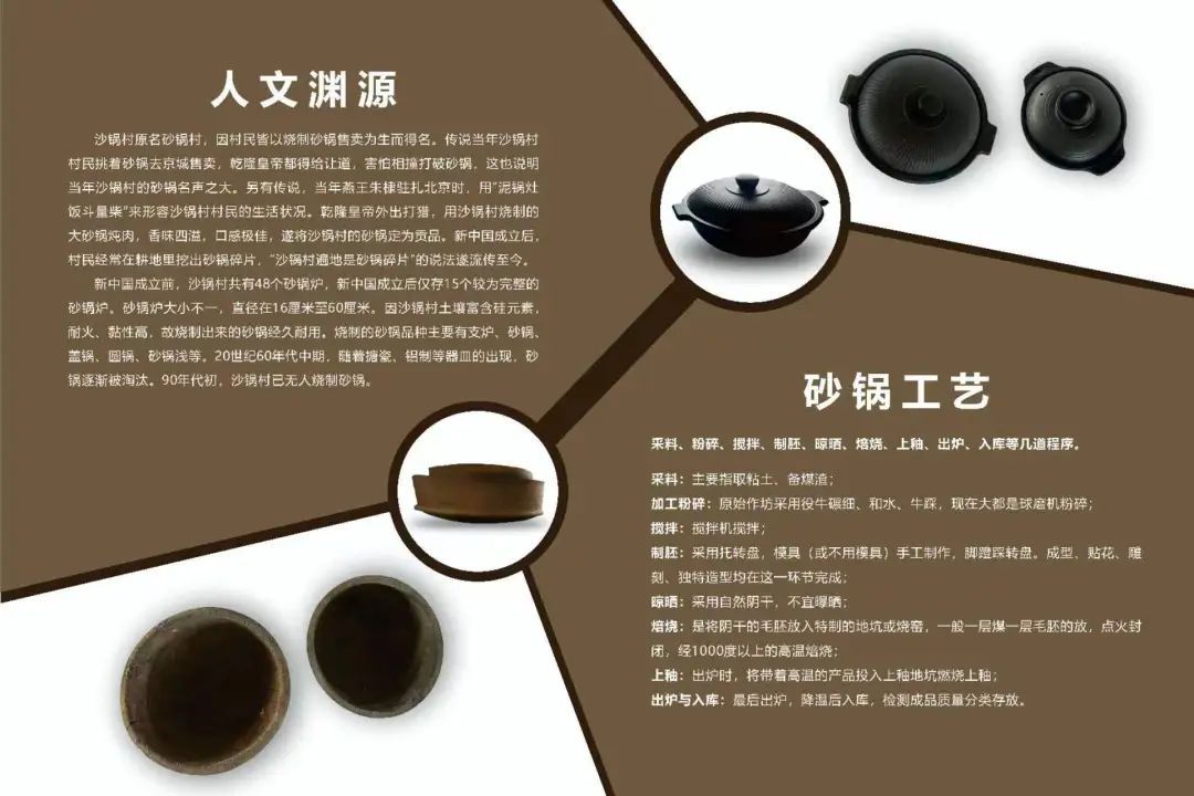 沙锅村原名砂锅村,因村民皆以烧制砂锅售卖为生而得名。传说当年沙锅村村民挑着砂锅去京城售卖,乾隆皇帝都得为其让道,害怕相撞打破砂锅。新中国成立后,村民经常在耕地里挖出砂锅碎片,“沙锅村遍地是砂锅碎片”的说法遂流传至今。为了防止源远流长的砂锅工艺、侯家峪高跷等珍贵文化失传,近年来,沙锅村着手打造起新的特色砂锅文化和高跷文化,让传统历史文化焕发出新活力。同时,依托侯家峪大桃品牌,积极探索发展绿色产业,打造集采摘、观光、民宿、旅游为一体的生态观光文化产业,进一步推动村域经济发展,实现乡村振兴。