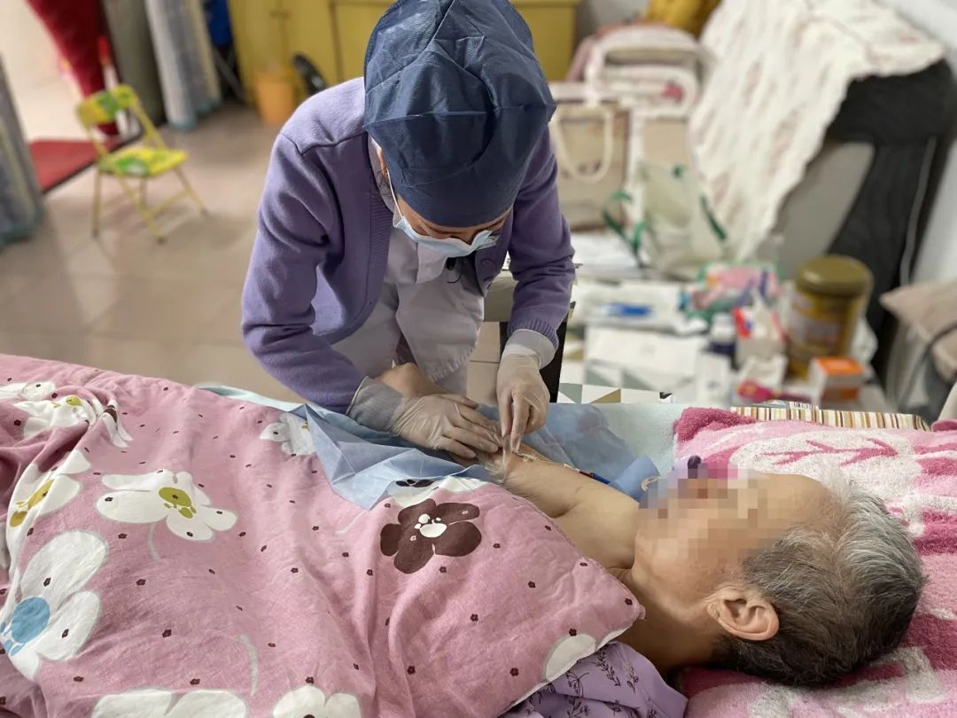 去年,家住宛平城社区的张阿姨因脑血管瘤破裂出血住进医院,经过一段时间的治疗,张阿姨在今年3月底出院,但目前行动极为不便,需长期卧床。更令她和家人苦恼的是,阿姨身上留置的PICC管需要定期维护,这也成了张阿姨和老伴赵大叔的一个大难题了。面对这一困境,赵大叔来到了宛平社区卫生服务站,找到了签约医生杜晓红寻求帮助。