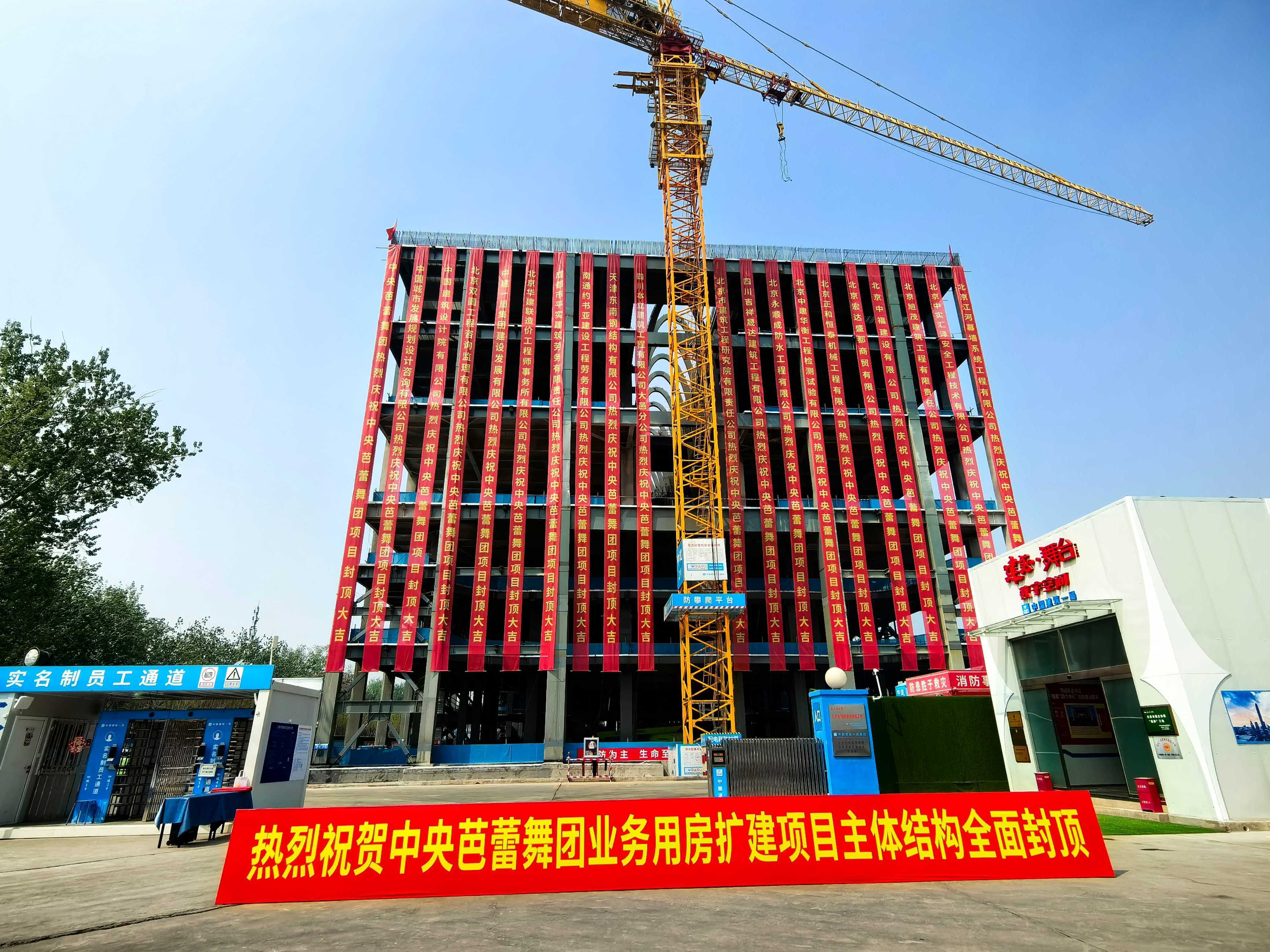 随着塔吊缓缓升起,最后一方混凝土顺利浇筑完成,4月11日,由中建一局建设发展公司承建的中央芭蕾舞团业务用房扩建项目主体结构全面封顶,标志着工程进入关键阶段。