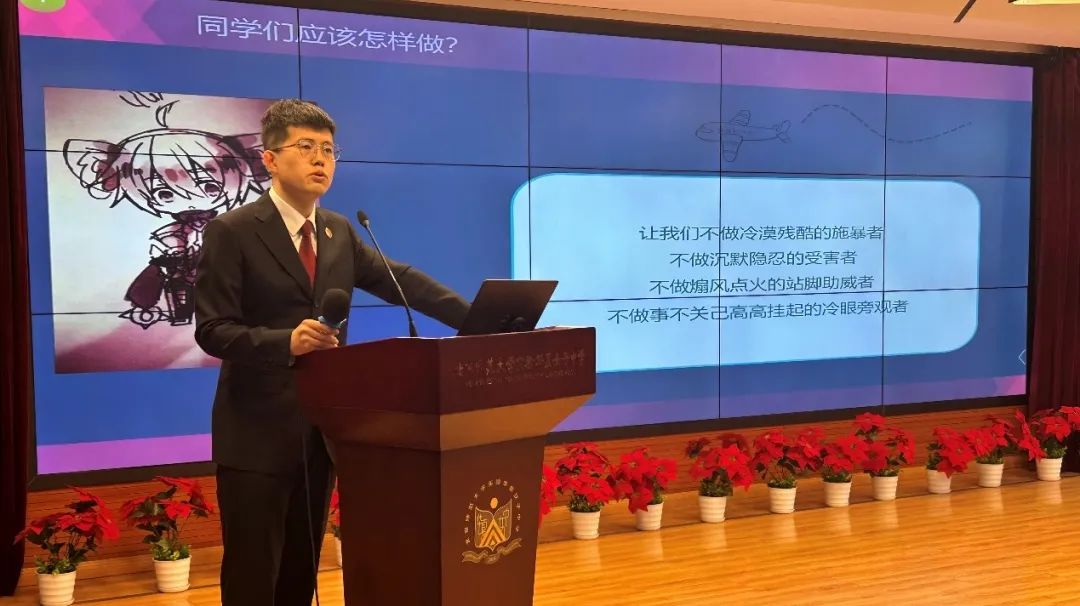 最后,潘振生向师生们表示:保护未成年人合法权益,是人民检察院义不容辞的职责。下一步,我们将进一步加强法治副校长的工作,努力为未成年人提供更加安全、更有温度的成长环境。同时,欢迎师生们走进西城区人民检察院,参观“新起点”基地未检综合办案区,近距离感受法治的力量!