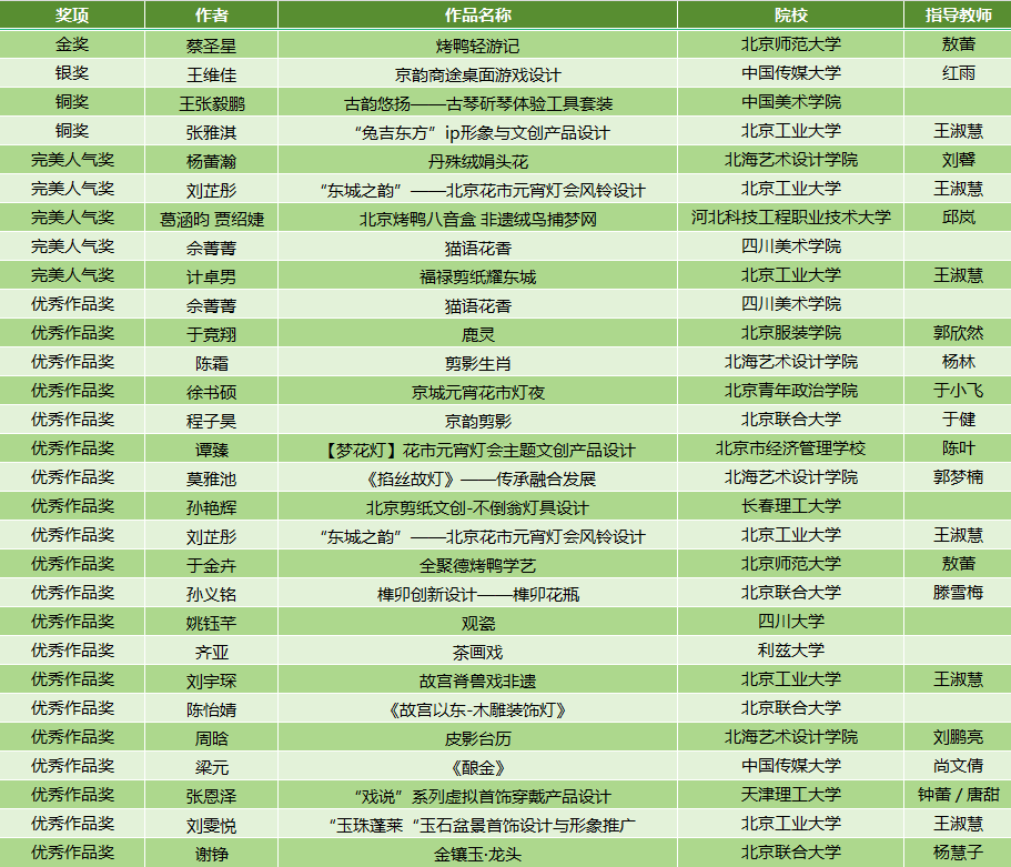 2023“故宫以东”完美世界文创校园设计大赛获奖名单公布