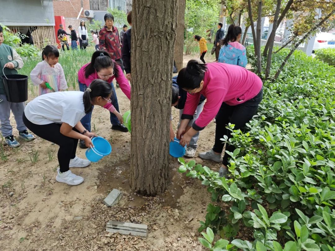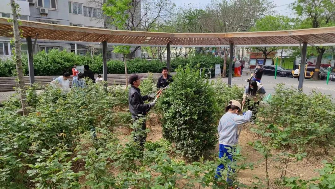 五里坨街道各社区组织在辖区院内开展绿地抚育行动,为公共绿地浇水、施肥,进行垃圾分类知识宣传,持续提升社区环境品质。