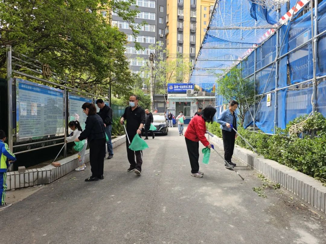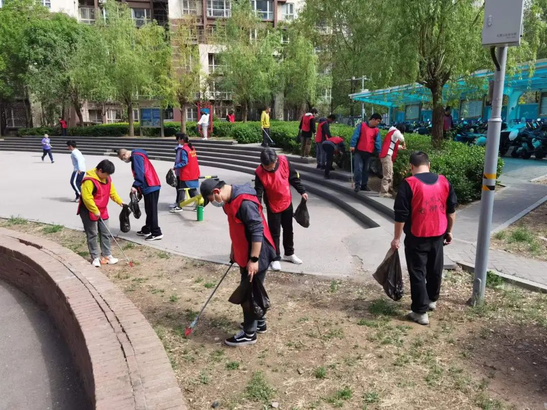 八宝山街道各社区开展环境卫生综合整治活动,组织在职党员、志愿者捡拾辖区枯枝杂草、宠物粪便、烟头等垃圾,美化社区。联合物业修剪树枝,消除隐患。