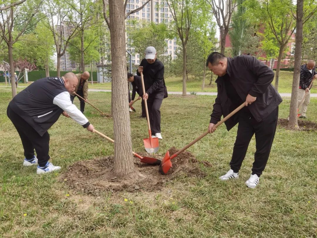 鲁谷街道各社区组织参与植树活动,分工协作种植绿苗花籽。大家挥锹铲土,热火朝天。
