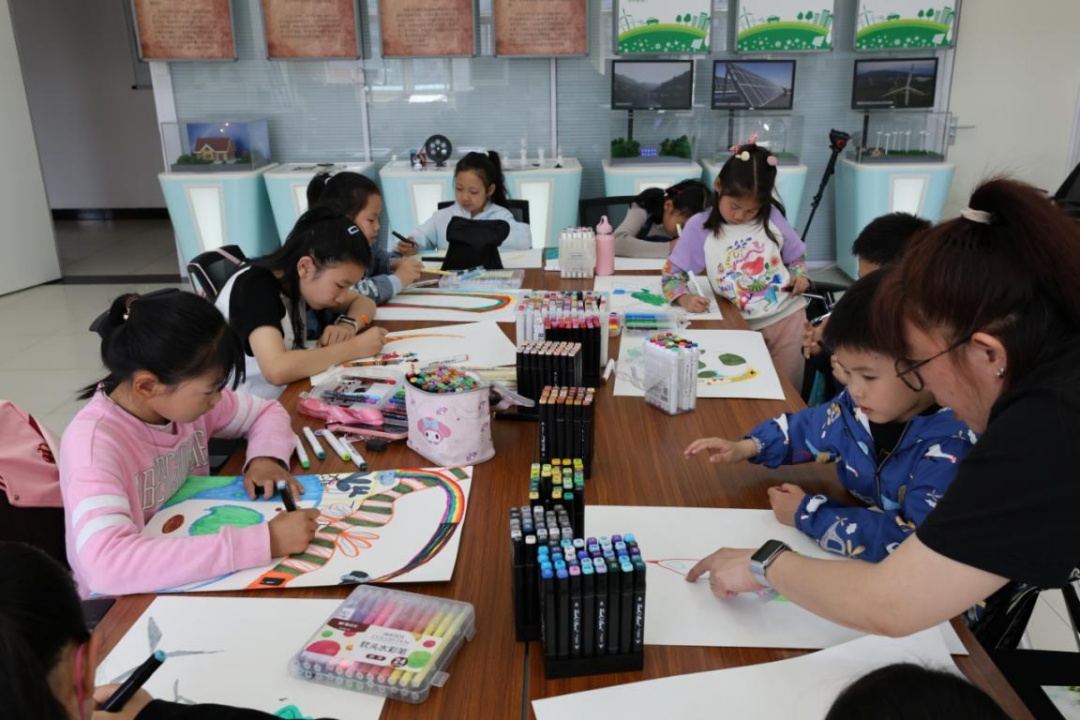 随后,同学们结合电力知识课堂中所学到的内容,以新能源服务生活、智慧出行、科技创新、节能环保、安全用电、人与自然和谐发展等主题进行绘画。五彩斑斓的电线,壮观的发电站,可爱的电力小精灵,在老师的引导下,孩子们用画笔勾勒出心中的绿色世界,每一笔、每一划等饱含着对低碳生活的向往,对环保地球的热爱,充满了想象力和创造力。