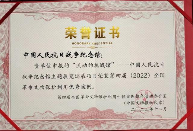 中国人民抗日战争纪念馆主题展览巡展项目荣获第四届(2022)全国革命文物保护利用优秀案例